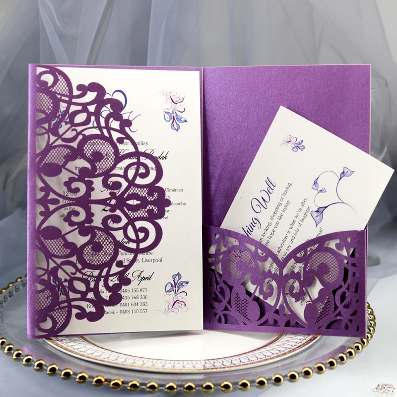 50pcs Elegant Laser Cut Wedding Invitation Card Customize Business With RSVP Card Greeting Cards Wedding Decor Party Supplies