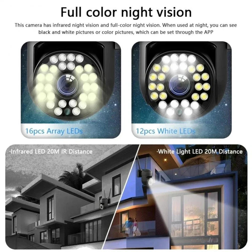 This camera has built-in 16pcs Infrared and 12pcs White LEDS, which can be fully controlled on the mobile phone APP and can switch Among normal Infrared /White light / Double Light Vigilance modes simply and quickly.