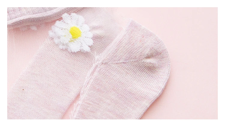 5Pairs Summer Woman Silk Socks Ankle Lace Ultra-thin Girl’s Transparent Glass Fiber Fashion Daisy Flower Harajuku Cute Style New