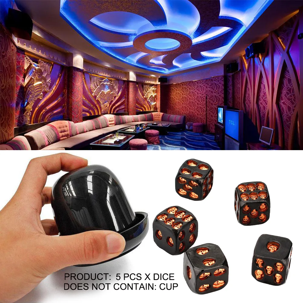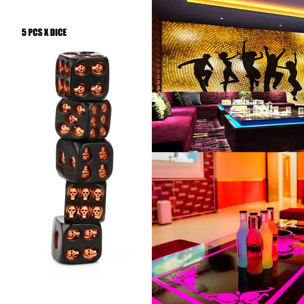 5Pcs/pack 18mm New Exotic Black Dice Gold Silver Skull Dice Set Game Creativity Festive party Entertainment Funny toys d&d dice