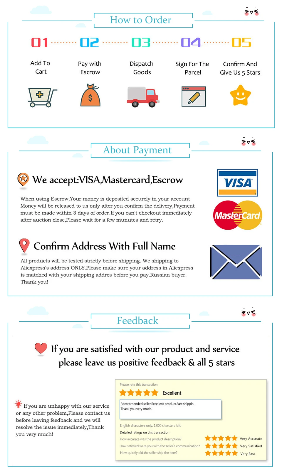 1.After receiving the goods, if you are very satisfied with our products, hope you can leave us a five-star feedback. 2.After receiving the goods, if there is any problem with the product, you can contact us at the first time. We are committed to solving it for you. We will not let you have any loss. 3. If you have not received the package at the end of the order protection time, please don’t worry, contact us, we will do our best to solve it for you. We will not let you have any loss. Describe your brand story, including establishment and development timelines, milestones, etc.