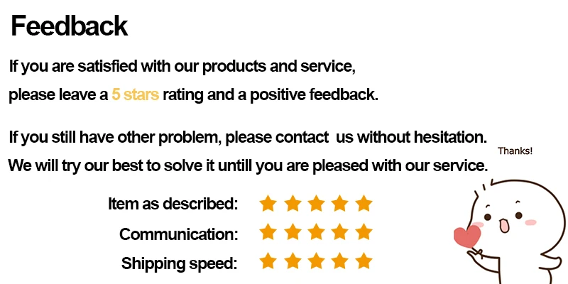 No matter what happened, please feel free to contact us at the first time instead of leaving a negative feedback or opening dispute.