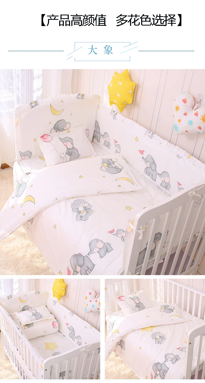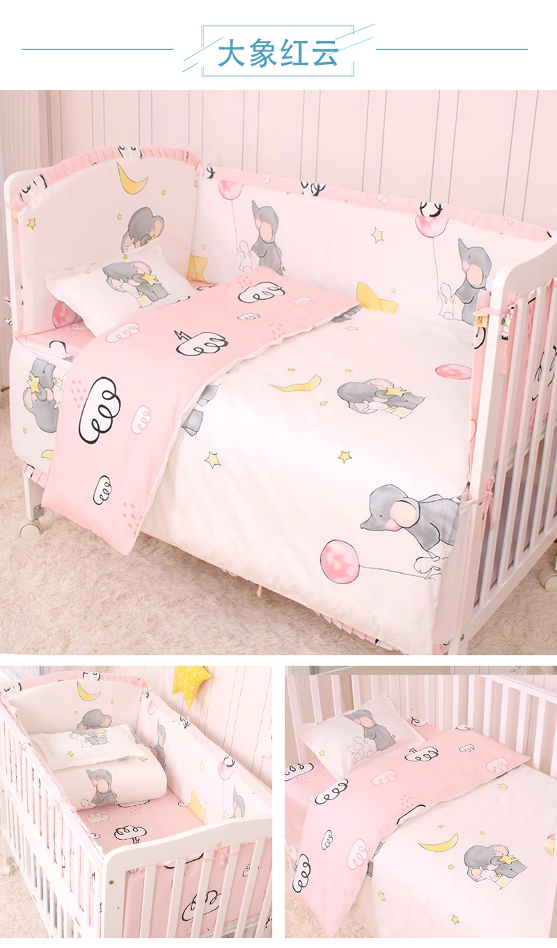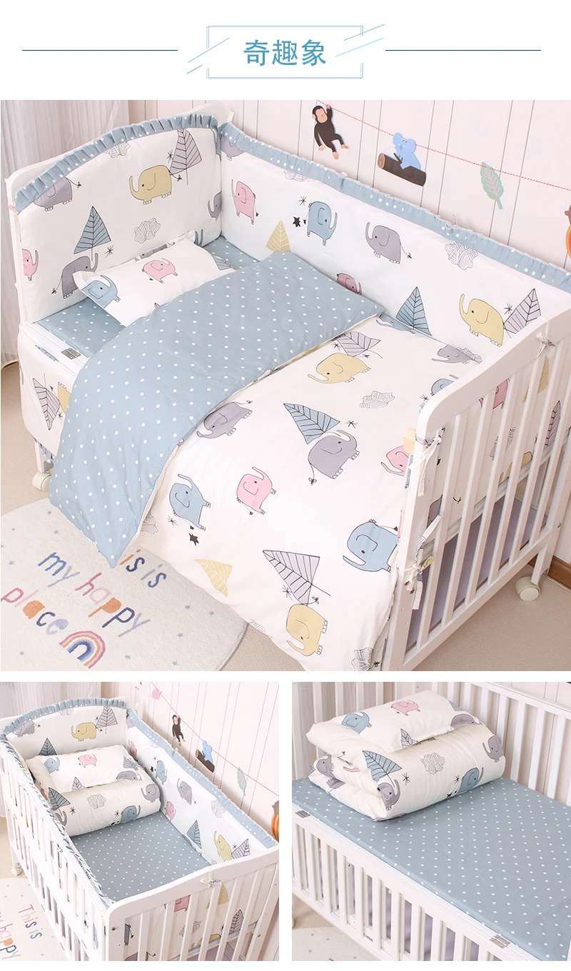 6/9pcs Elephant baby bedding set Cotton bedroom decor Baby Girl Boy Crib Bed Linens bed bumper 120*60/120*70cm