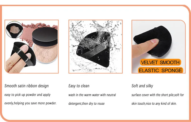 – this triangle makeup puff velvet cotton material is soft to the touch, the built-in elastic sponge is not easy to deform, easily washable and reusable.