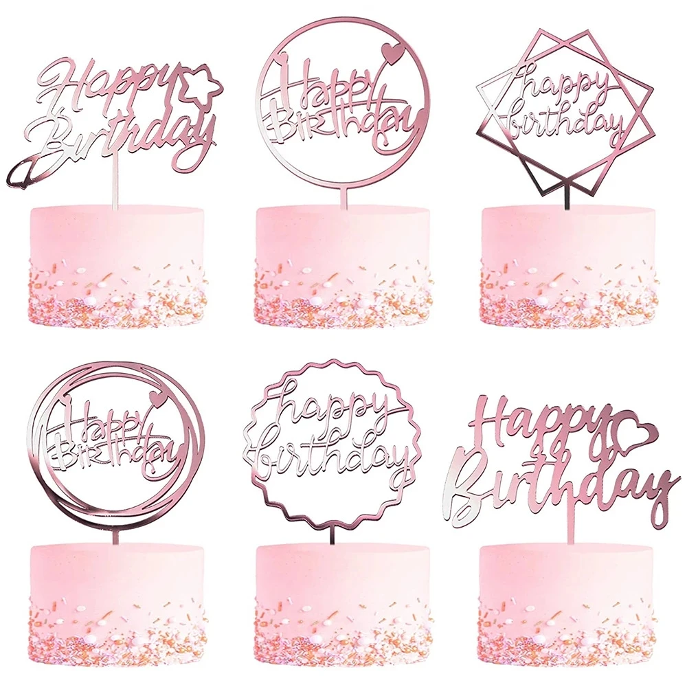 6pcs Happy Birthday Cake Topper Rose Gold Acrylic Birthday Cake Topper Decorations for Kids Baby Shower Party Cake Gift Supplies
