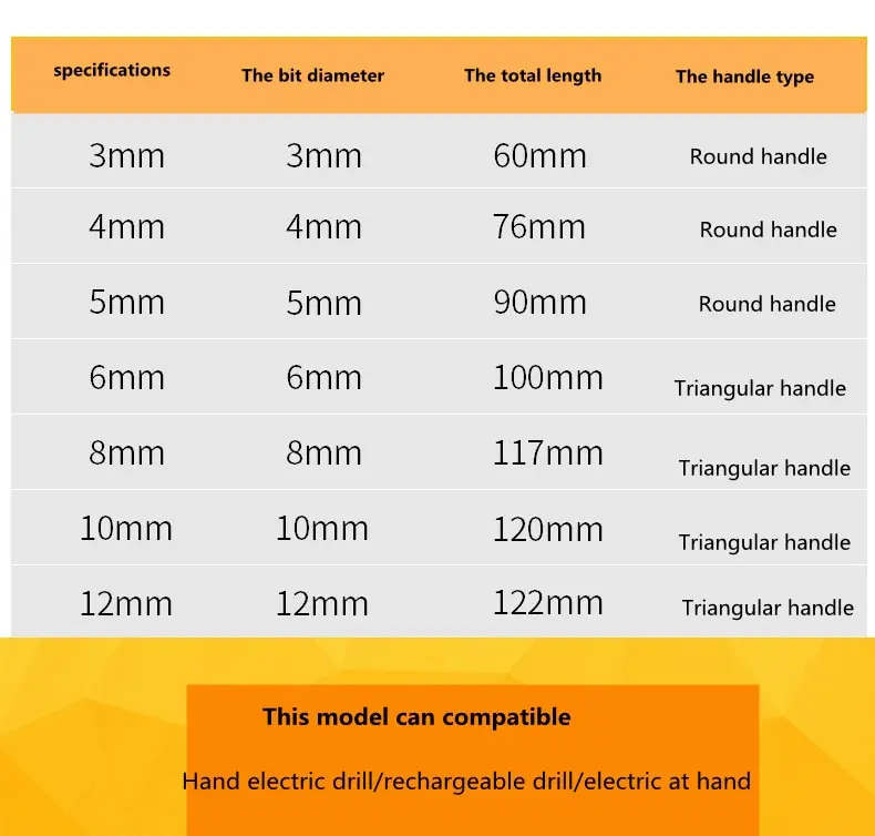 Applicable : electric hand drill/impact drill/lithium electric drill/bench drill