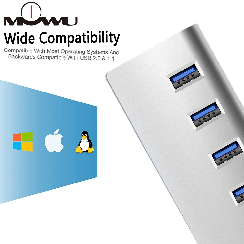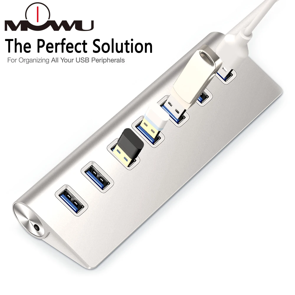 7 Port Aluminum USB 3.0 HUB 5Gbps High Speed Power Adapter For PC Laptop Mac NEW