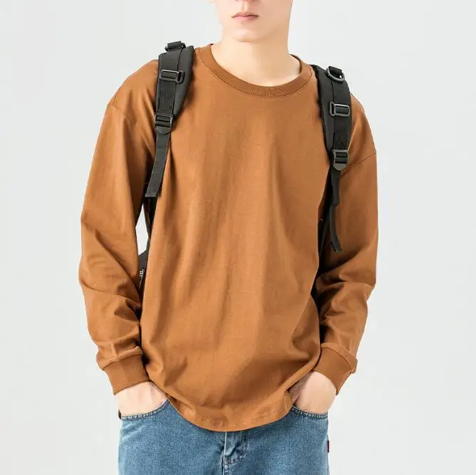7 Solid color sweatshirts thin version solid color long sleeve round neck for winter cothing for men male