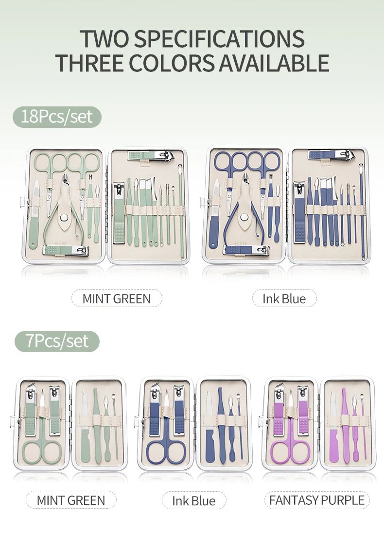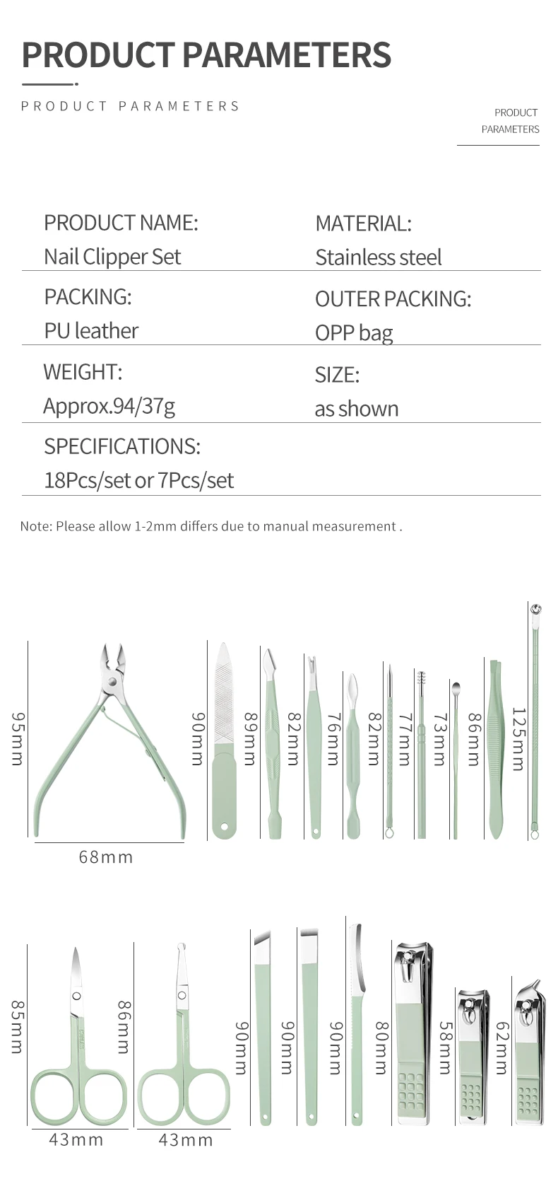 7pcs Manicure Set Pedicure Sets Nail Clippers Tools Stainless Steel Professional Nail Scissors Cutter Travel Case Kit 7in1