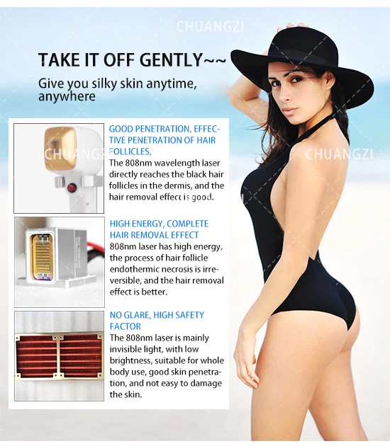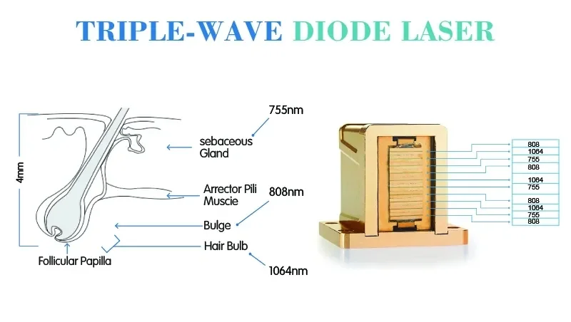 4, 755nm 808nm 1064nm triple wavelength, acheving best result for all hair types and all skin types