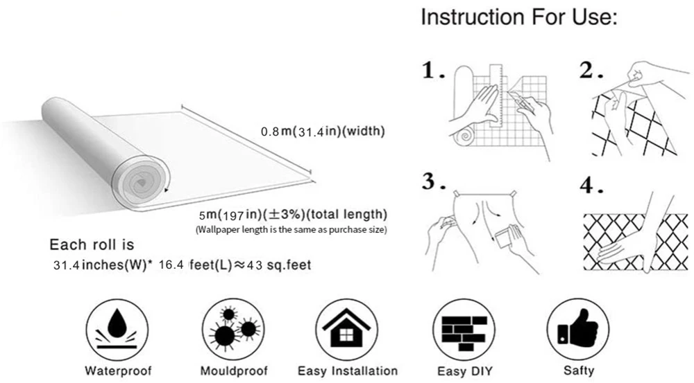 We will regularly produce new, good quality products. Our peel and stick wallpaper is novel in design and has a variety of styles to choose. Make your room a beautiful and comfortable change in the easiest way. Printed with safe and high quality materials. Not only waterproof, mildew proof, but also removable and repositionable. Remove it clean and leave no sticky residue.