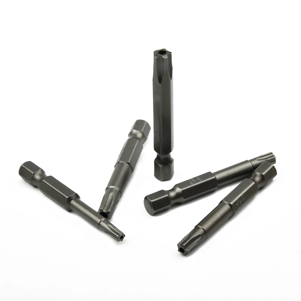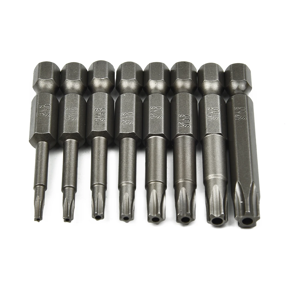 8pcs/set 50mm 5 Point Torx Drive Bit Set 1/4" 6.35mm Hex Shank Electric Screwdriver Bit Kit Power Tools With Center Hole