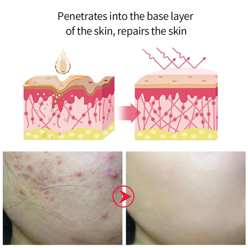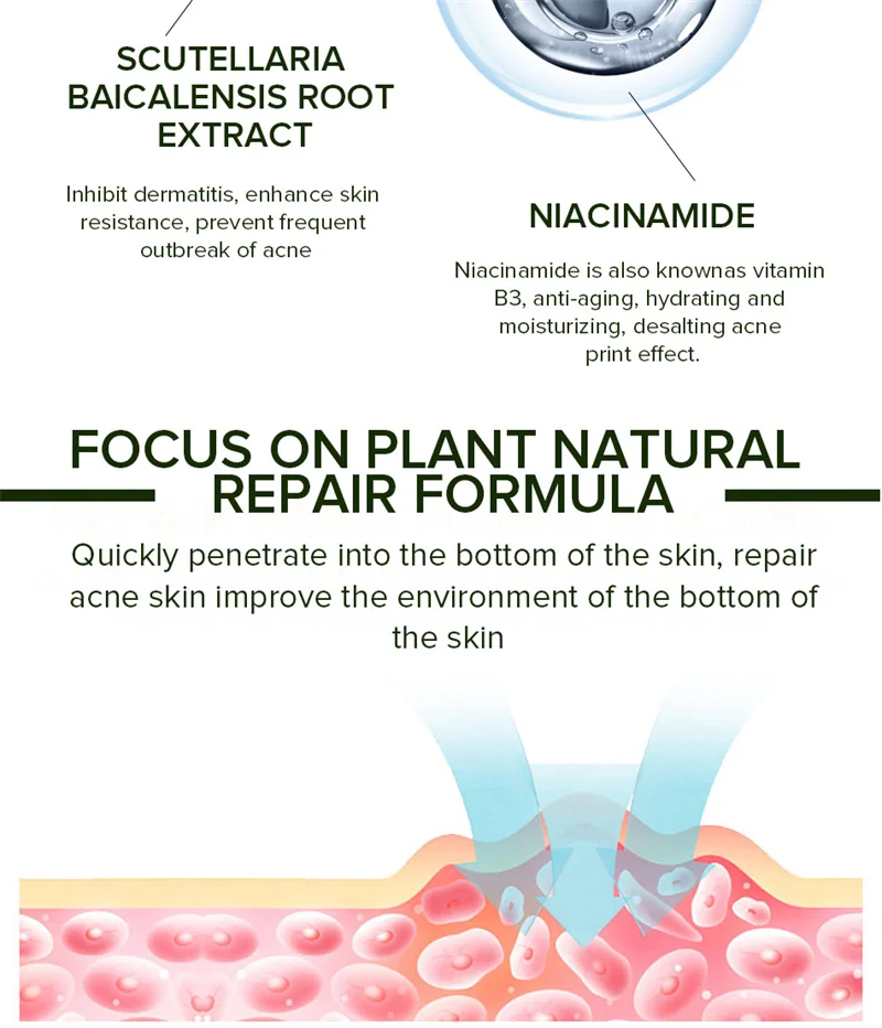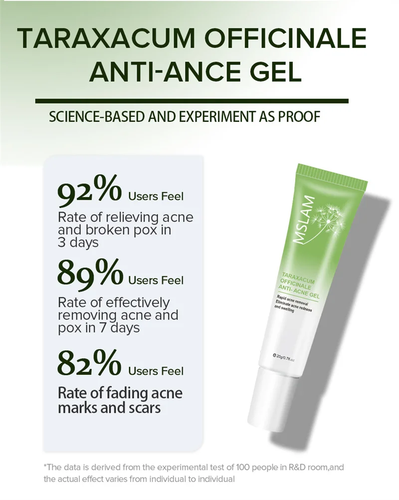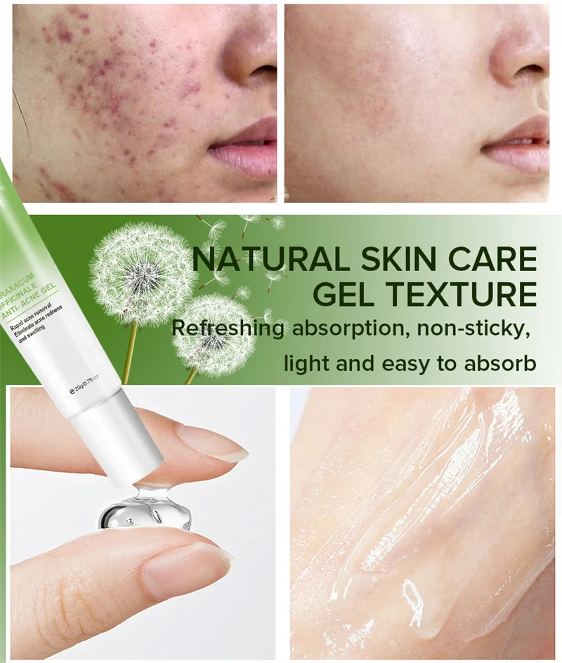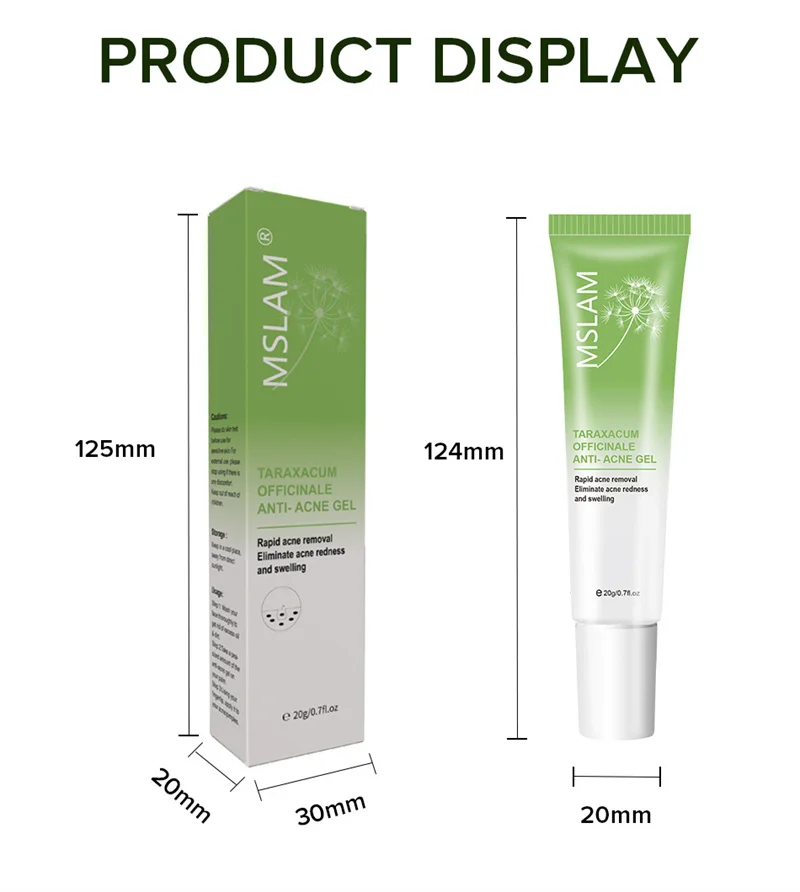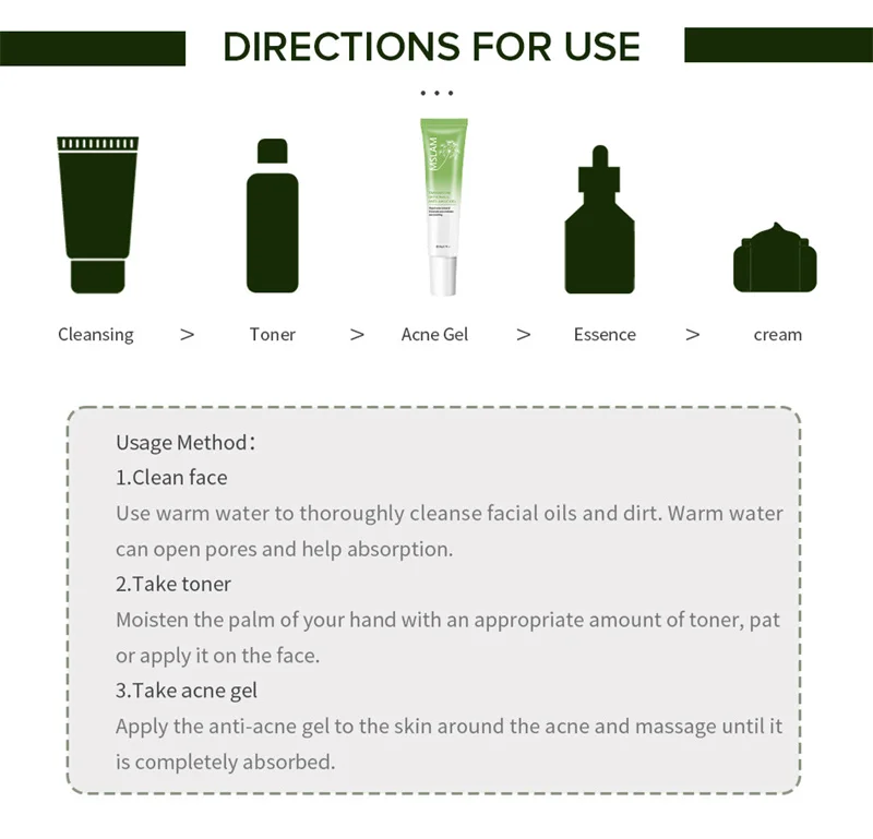 The gel is mild and can be quickly absorbed,effective treatment of acne and papules, and helps to undo skin damage. It will effectively prevent pimples and fade acnes marks.