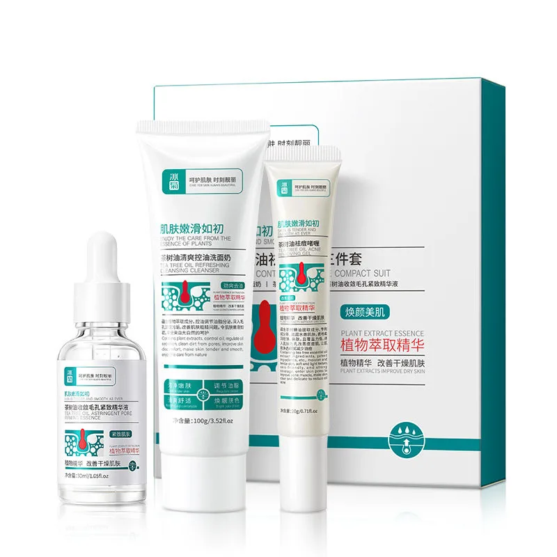 Herbal Acne Removal Face Cream Anti-Acne Gel Pore Shrink Serum Amino Acid Facial Cleanser Treatment Acne Mark Facial Care Set