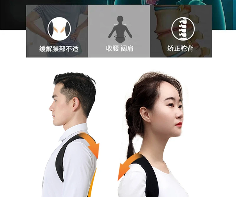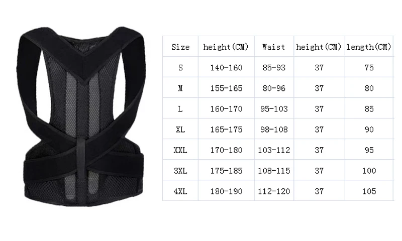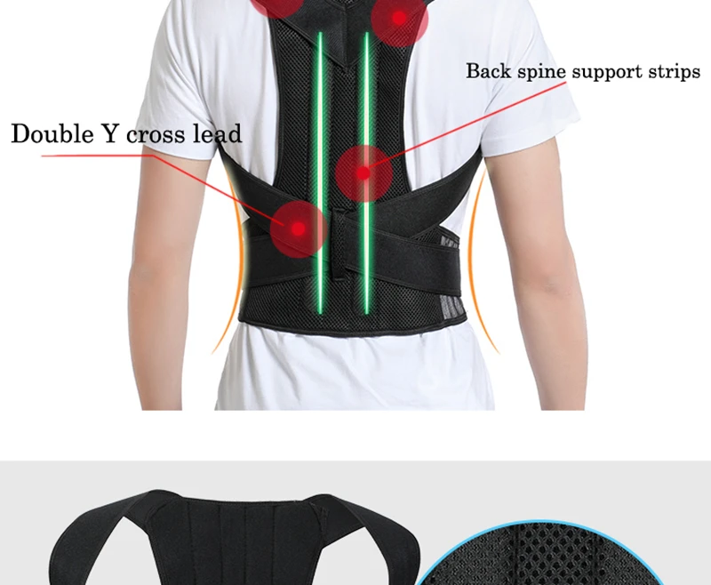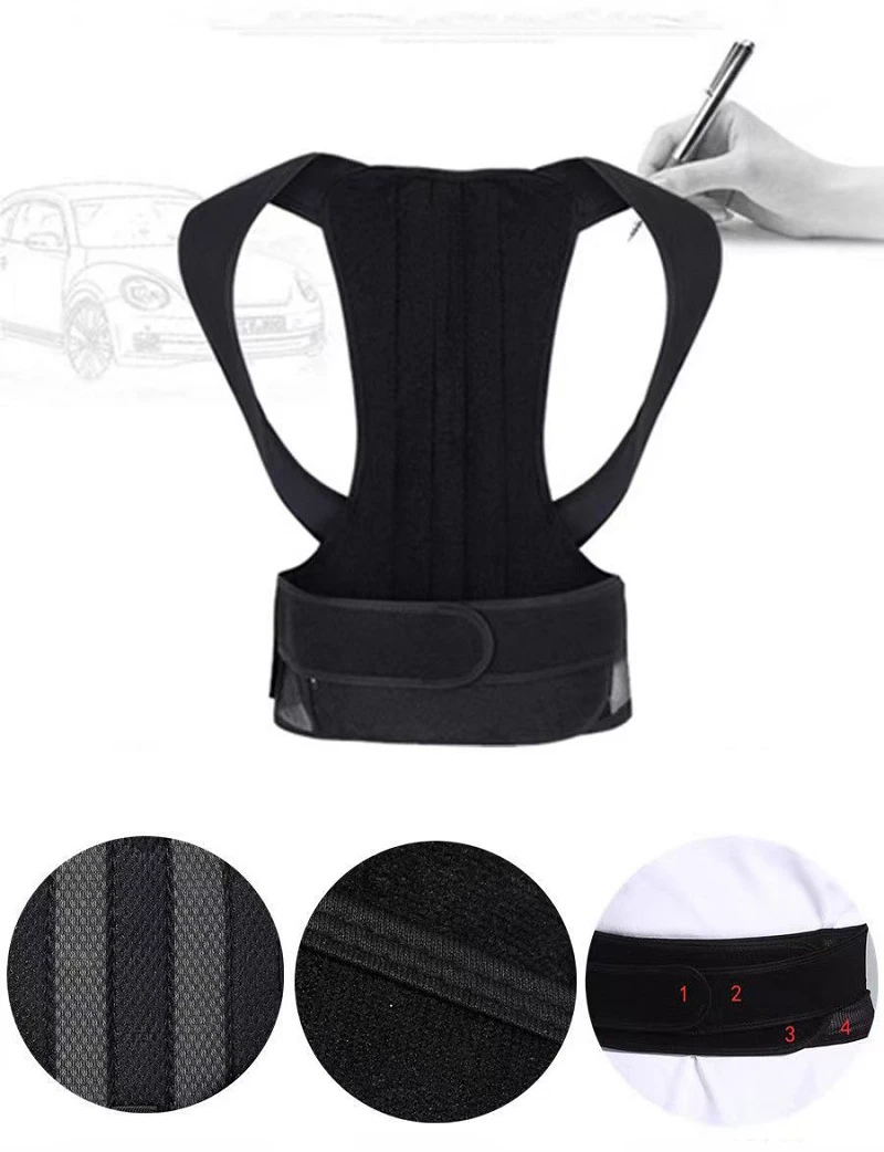 Adjustable Black Back Posture Corrector Shoulder Lumbar Spine Brace Support Belt Health Care for Men Women Unisex