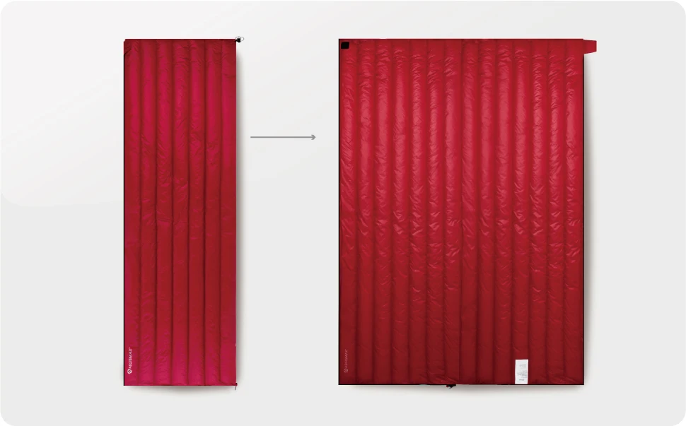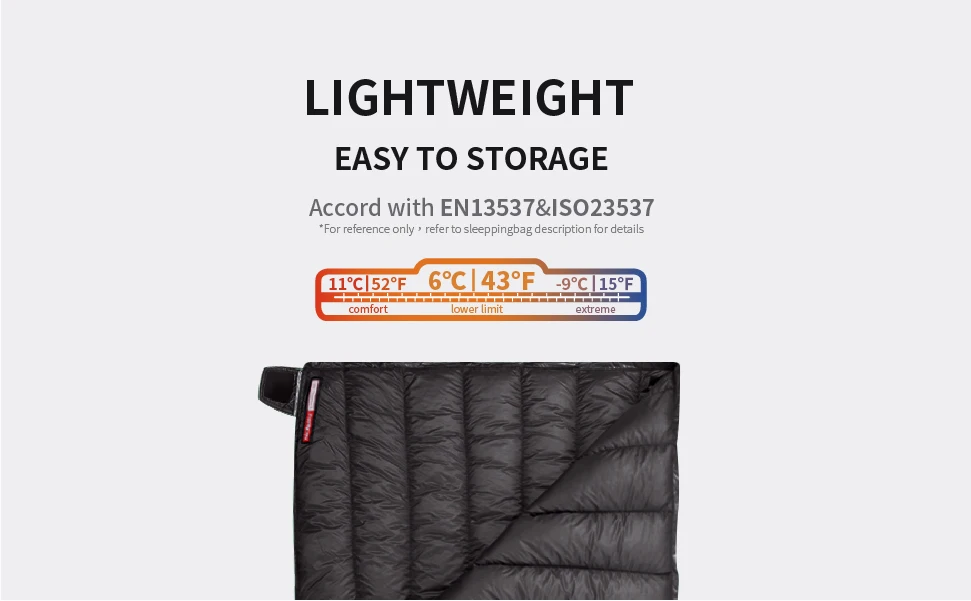 • on the way, the space for our backpacks and duffel bags is too precious, but simple travel limits our choices. We designed this E-series sleeping bag for this disturbing contradiction. This so lightweight and comfortable sleeping bag is the best choice for travel.When you close the zipper it is a comfortable single sleeping bag, open the zipper and unfold the sleeping bag, it becomes a duvet that can be used by multiple people.The E-Lengthen sleeping bag is cut in a tapered shape to save weight and space, while ensuring that there is enough area for a double duvet after unfolding.