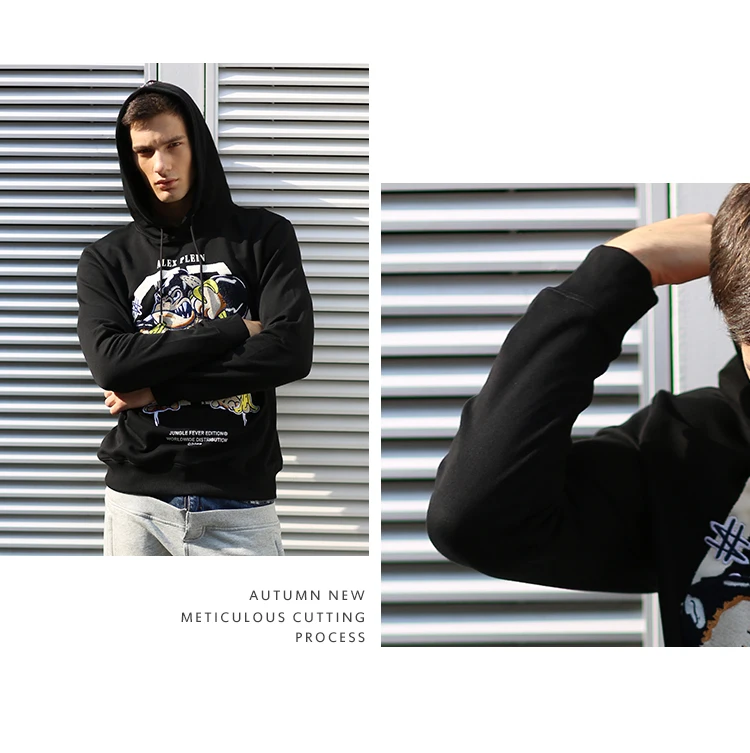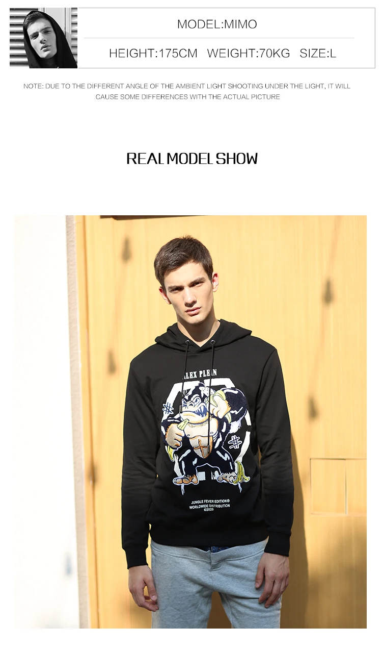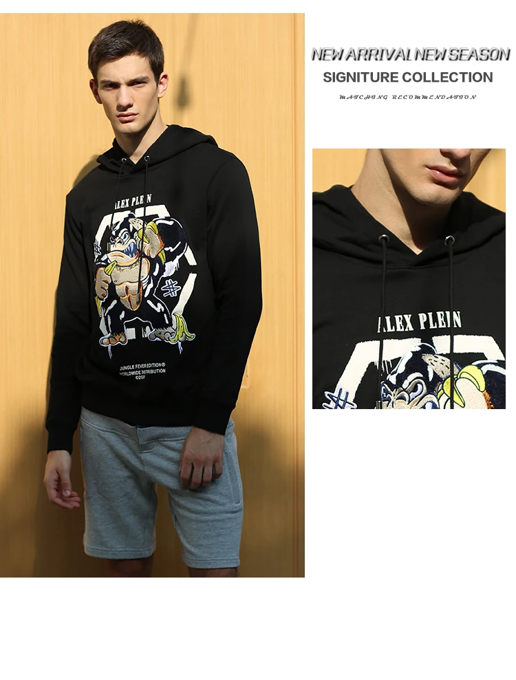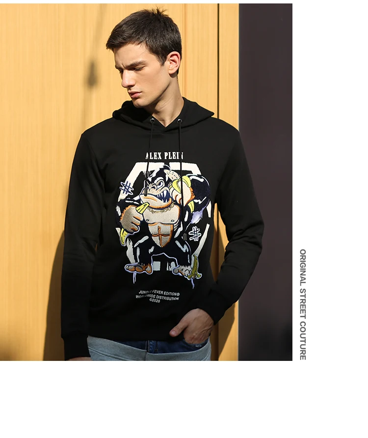 Alex Plein Sweatshirt Men 100% Cotton Monkey Embroidery Hoodies Man Clothing Aesthetic Fashion Streetwear 2020 Winter Cartoon