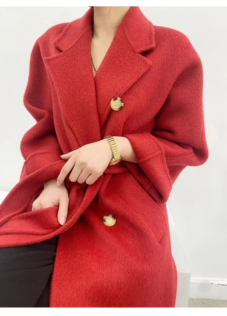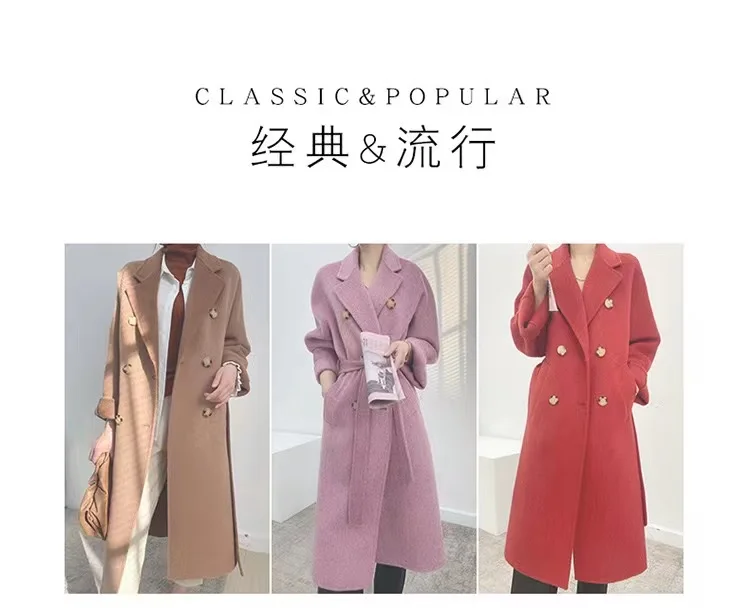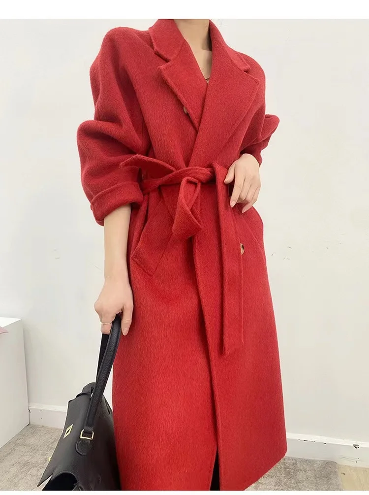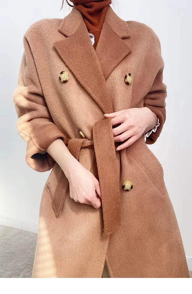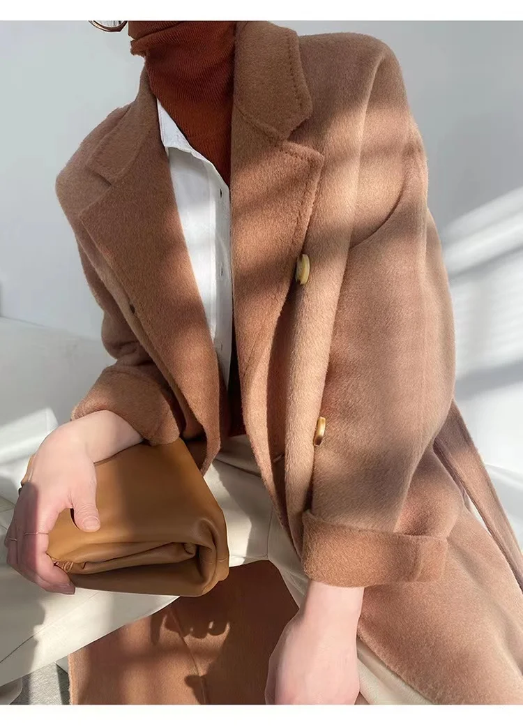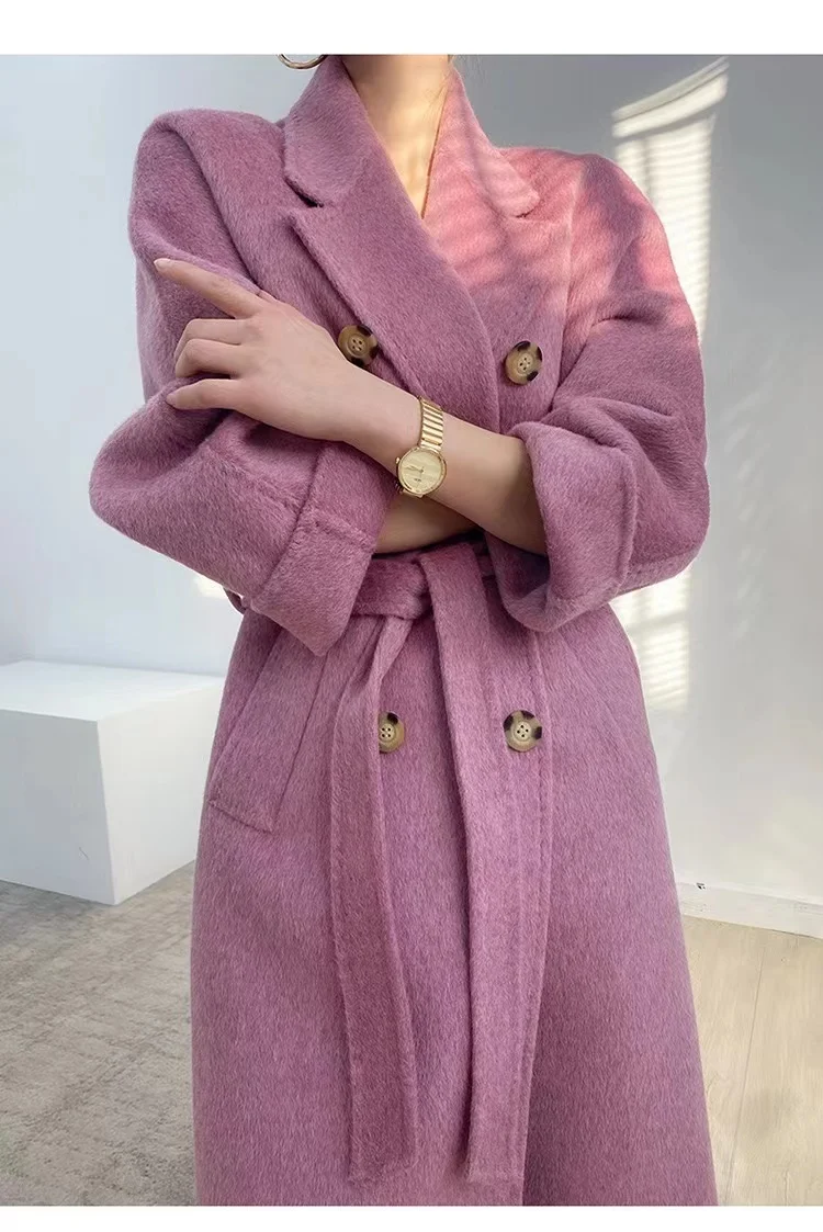 Alpaca double faced wool coat Long woolen coat Women's coat High quality cashmere wool
