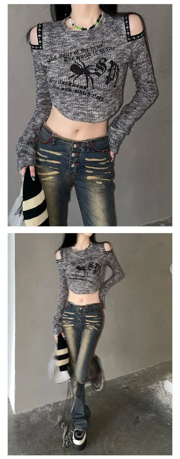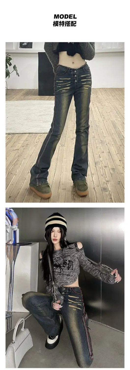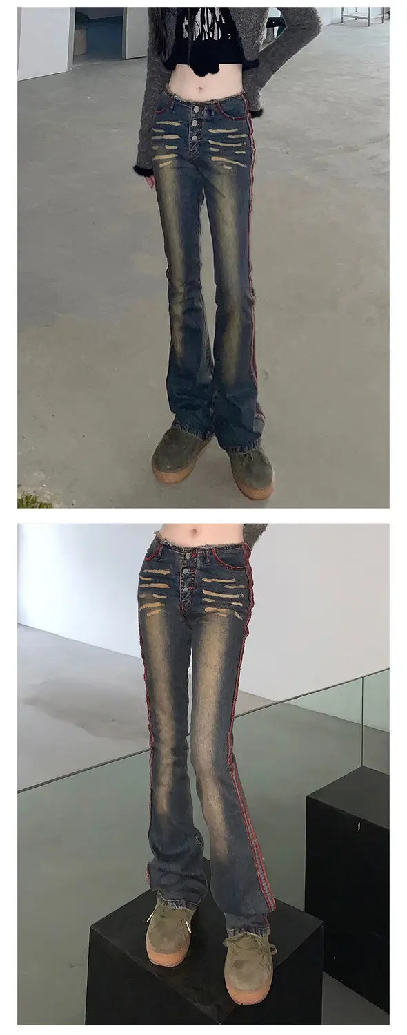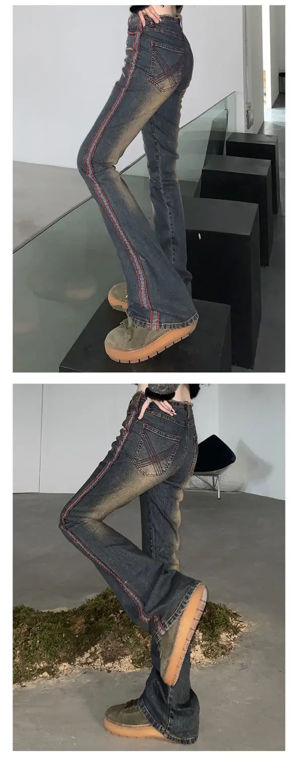 American vintage jeans female 2023 spring and autumn new high-waisted slimming design sense flared pants high street ins tide XL