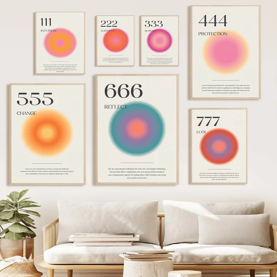 Angel Number Gradient Aura 333 444 555 Y2k Wall Art Canvas Painting Nordic Posters And Prints Wall Picture For Living Room Decor