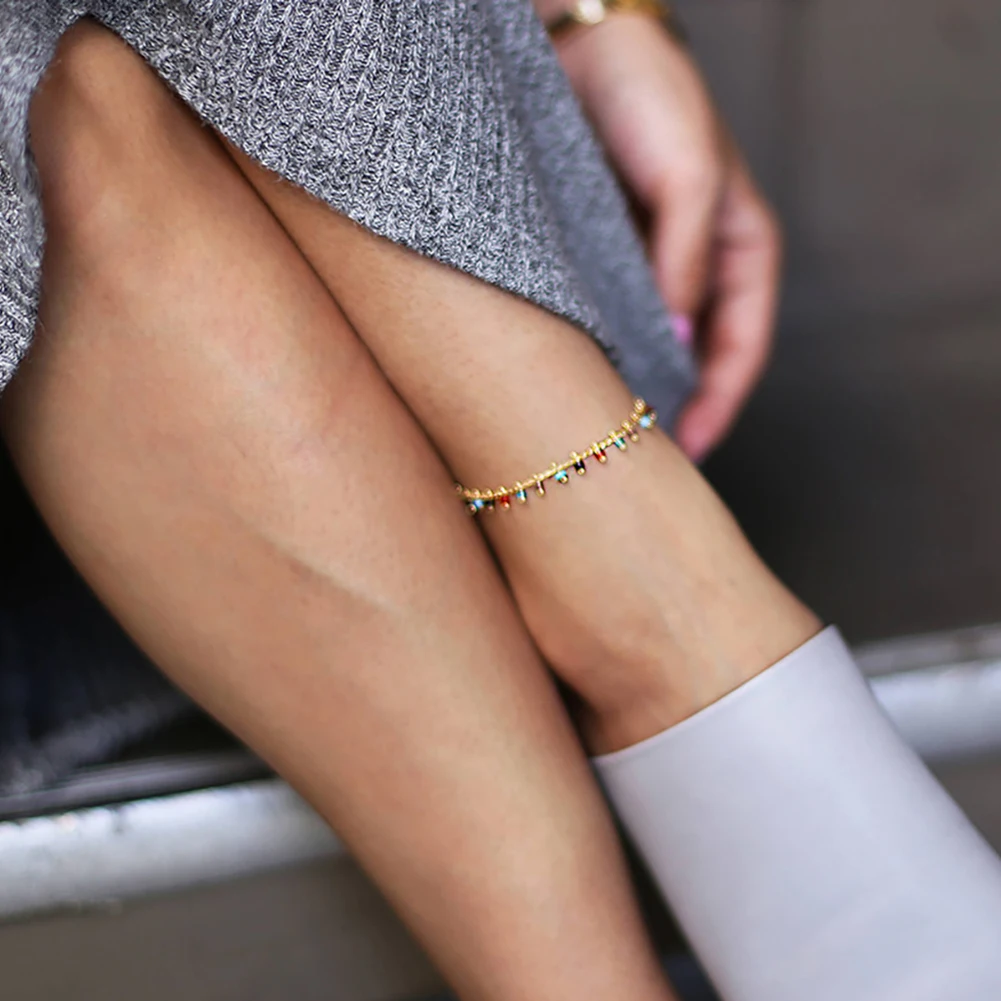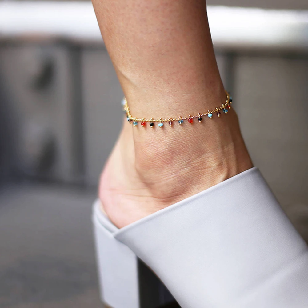 Anklets for Women Crystal Color Rhinestone Anklet Female Creative Beach Personality Wild Feet Jewelry For Woman 1PC