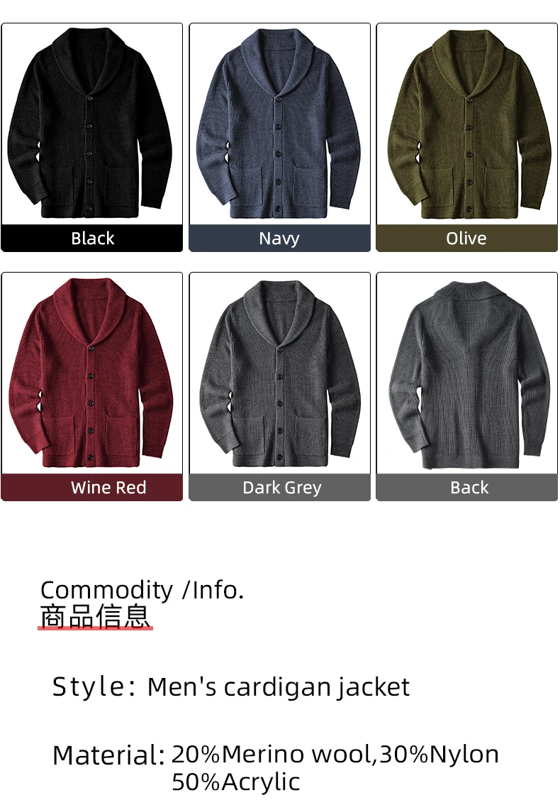 Army Green Cardigan Sweater Men Sweater Coat Extra Coarse Wool Sweater Thicken Warm Casual Coat Men Fashion Clothing Button Up