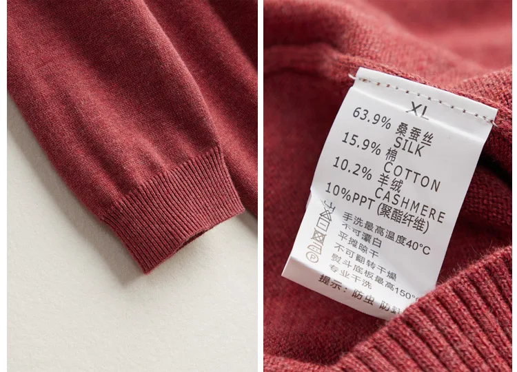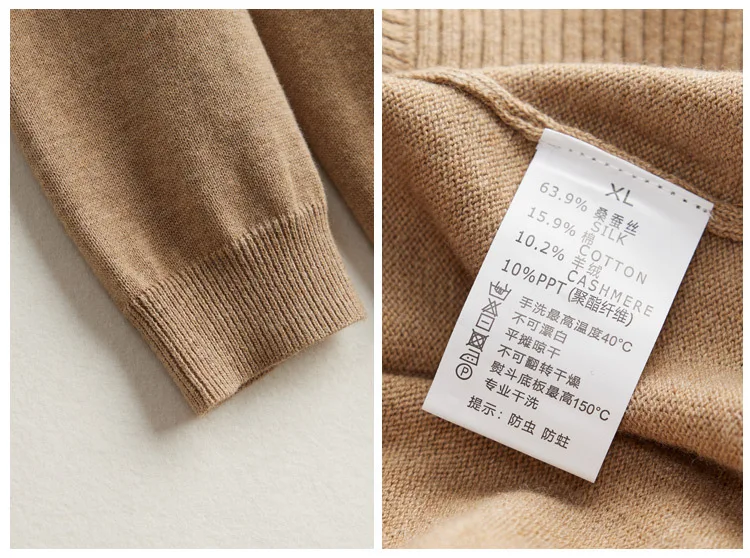 Fabric material: 63.9% natural mulberry silk, 10.2% cashmere, 15.9% cotton, 10% PPT