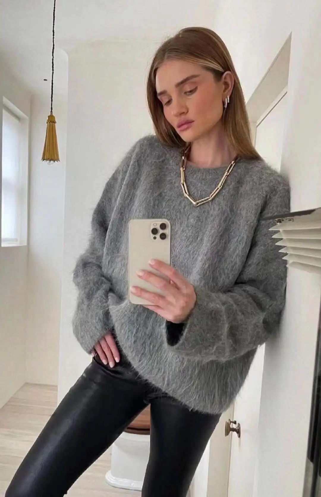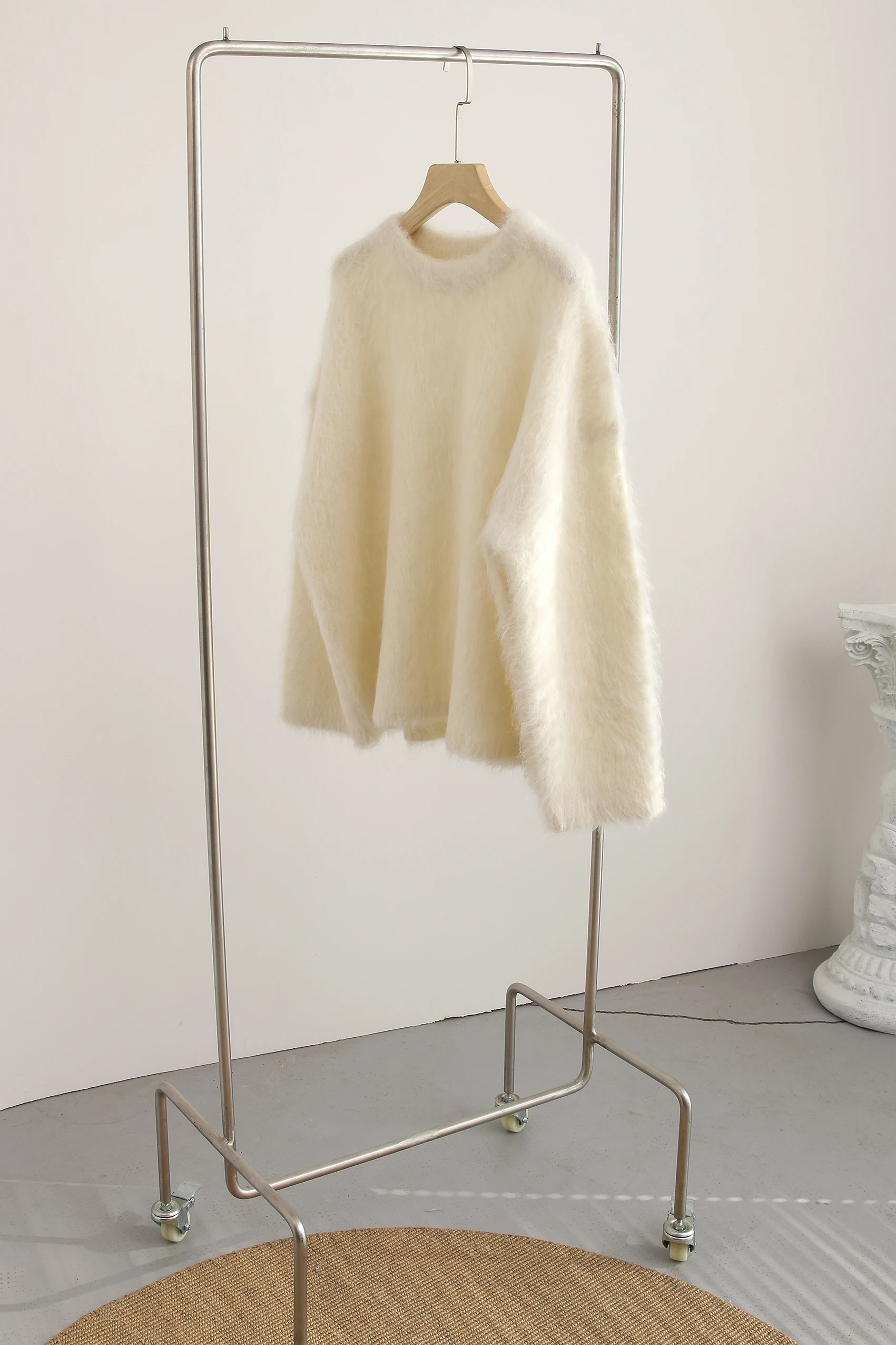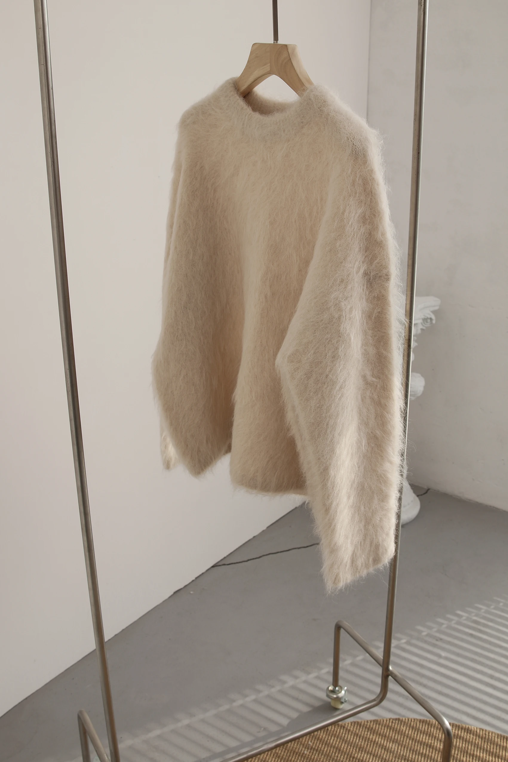 Autumn and Winter New Warm Alpaca Slouchy Pullover Scratch Sweater Solid Simple Knitwear Knitwear Women