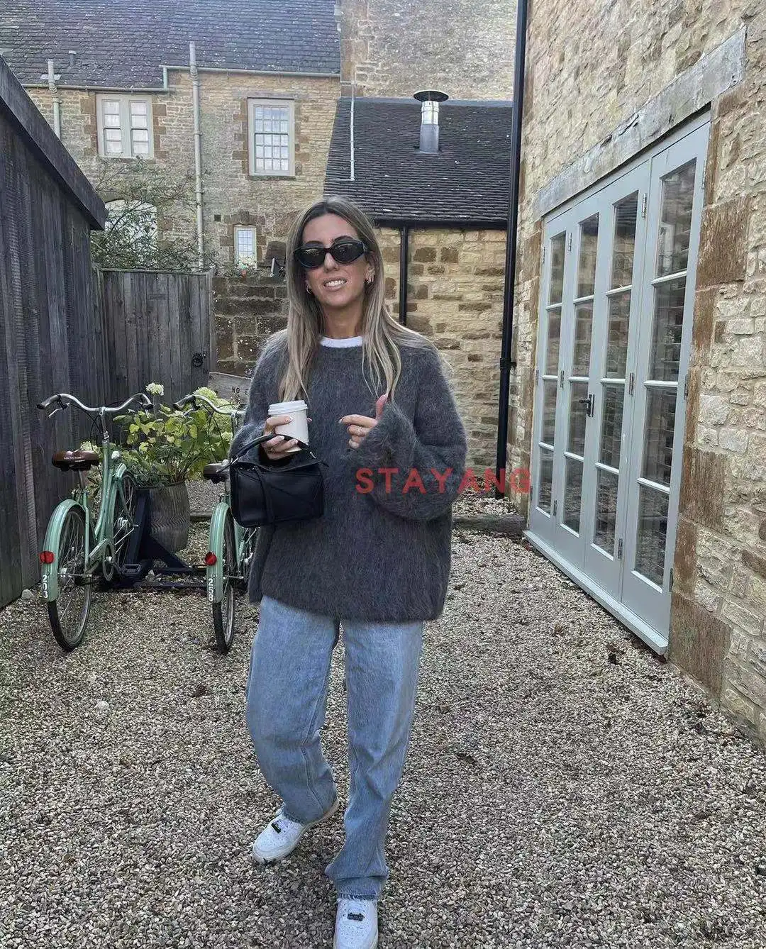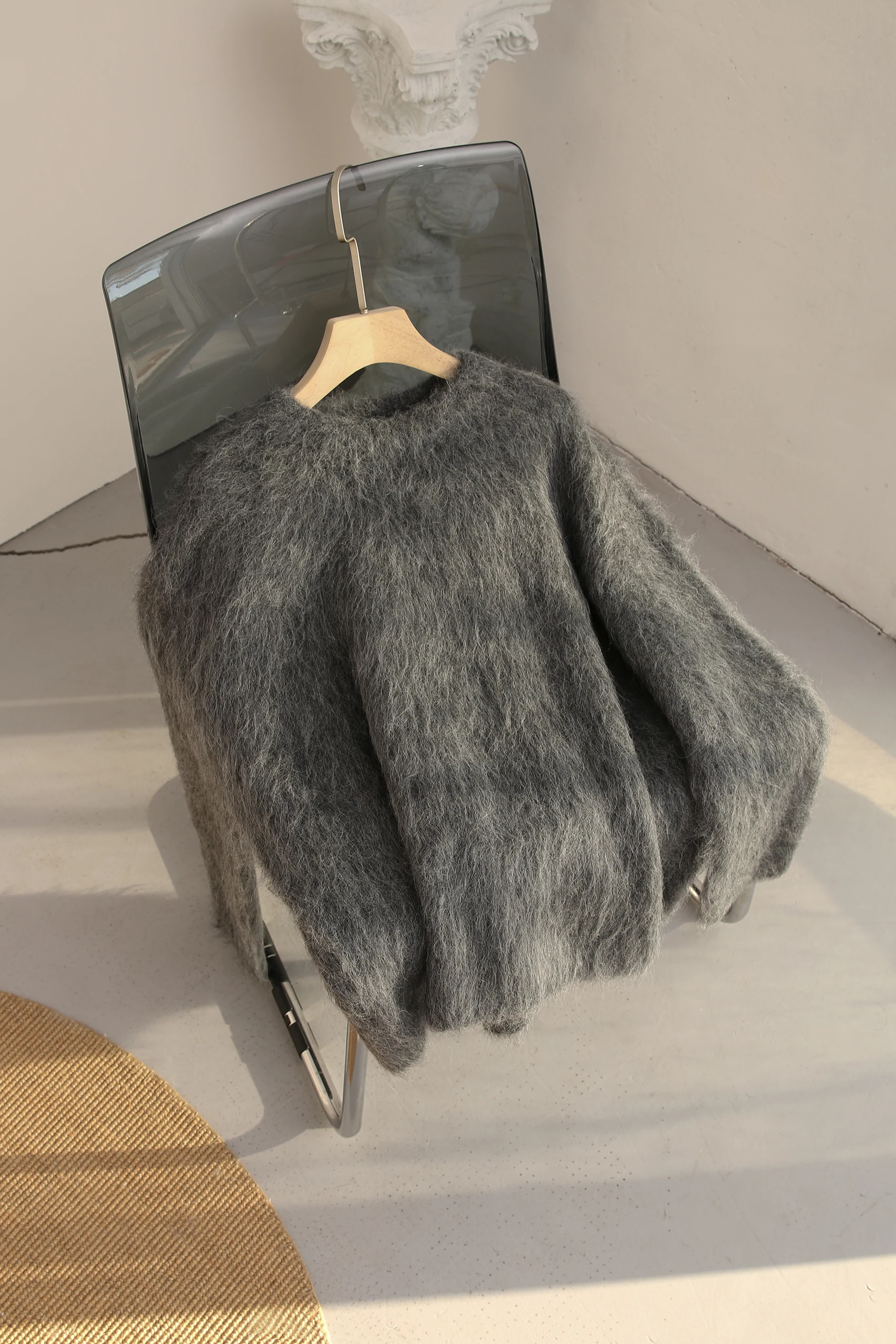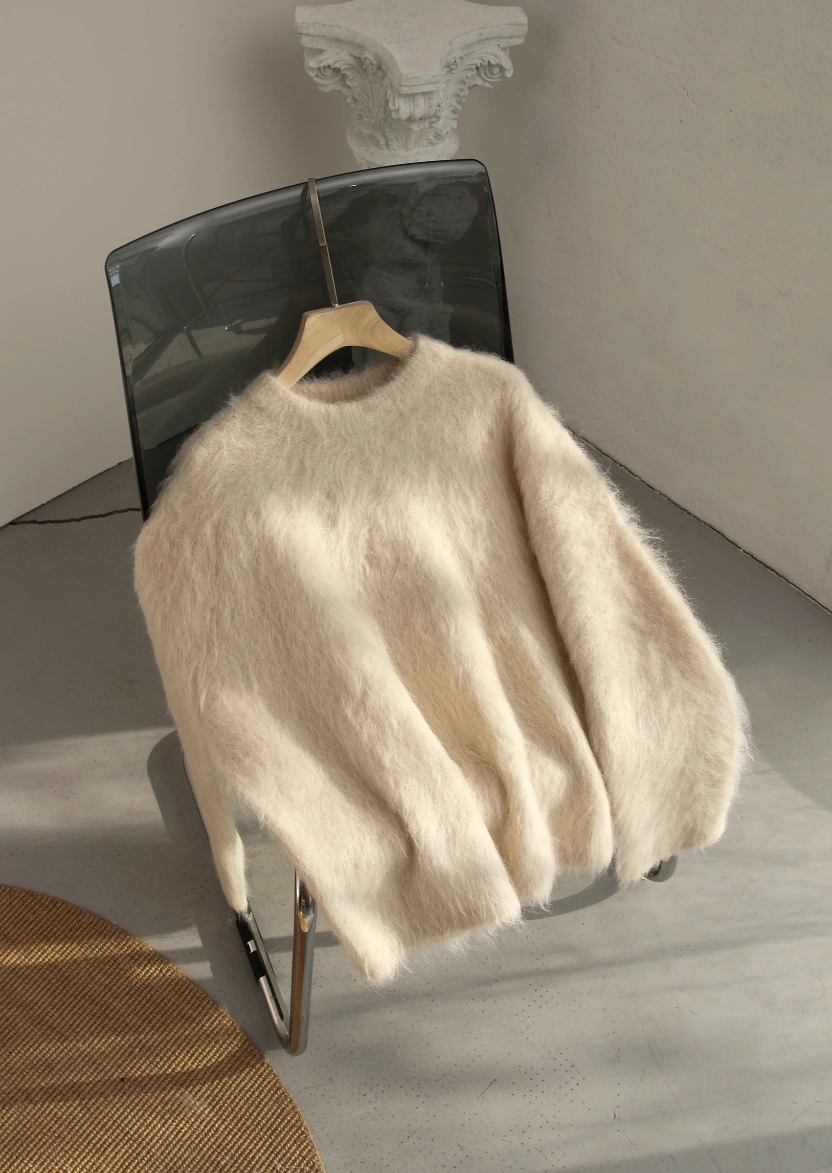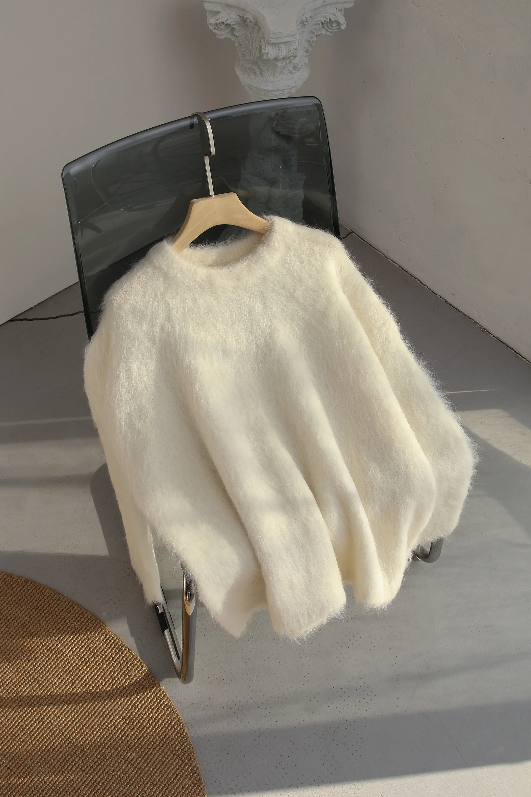 Autumn and Winter New Warm Alpaca Slouchy Pullover Scratch Sweater Solid Simple Knitwear Knitwear Women