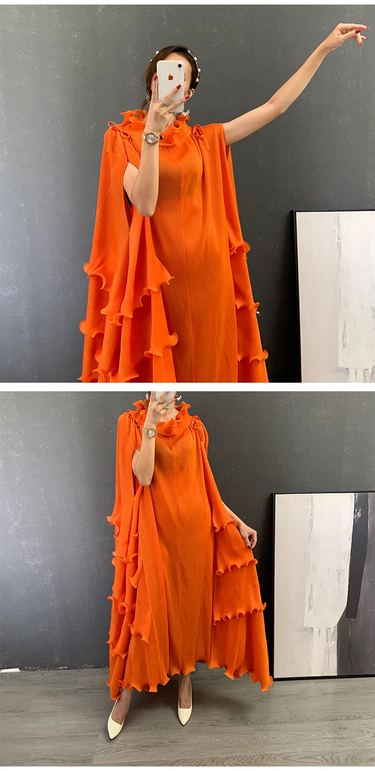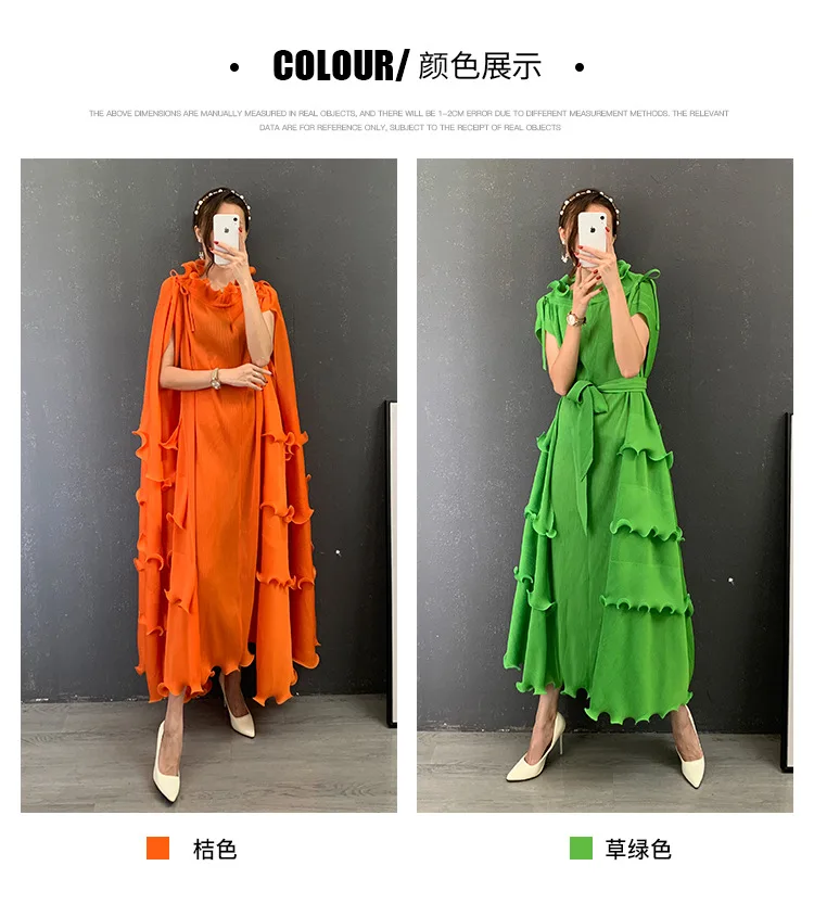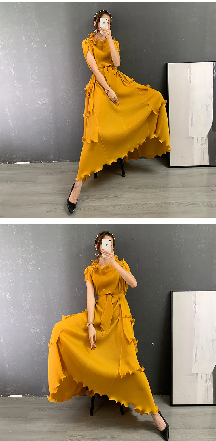 autumn new women's evening dress Miyak fold plus size Adding fertilizer to increase the slimming fungus lace belt long dress