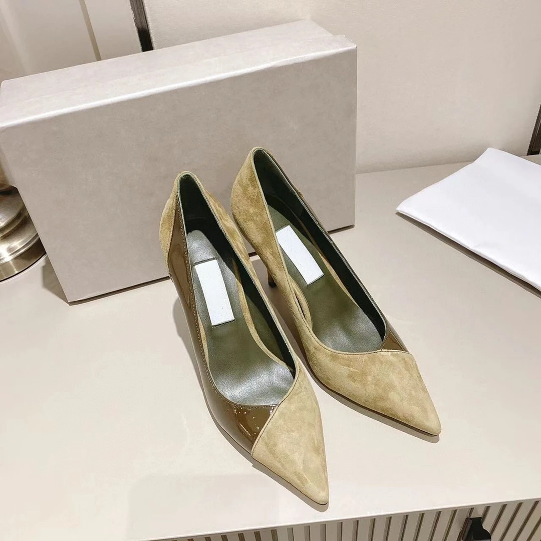 Autumn new women's single shoes 2022 shallow mouth pointed toe stiletto color matching British style high heels