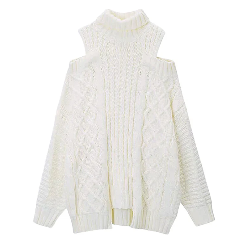 Autumn Winter Korean Style Women Turtleneck Knitted Sweaters Fashion Wild Knitwear Outwear Female Sexy Off Shoulder Pullovers