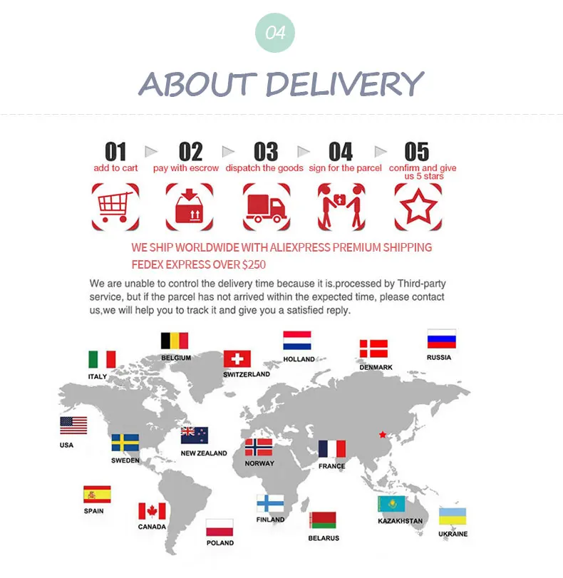 Logistics: We have overseas warehouses, and the delivery speed is fast. You can upgrade to FedEx for free if you spend more than 250 US dollars. Choose us and we will give you the best service. 🙂