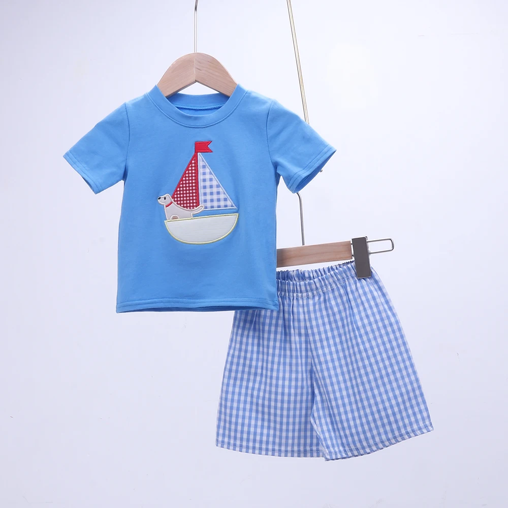 Baby Boy Clothes Set Fashion Newborn Children Set Ship Embroidery Stripes Sleeveless T-Shirt High Quality Shorts Suit For Boys