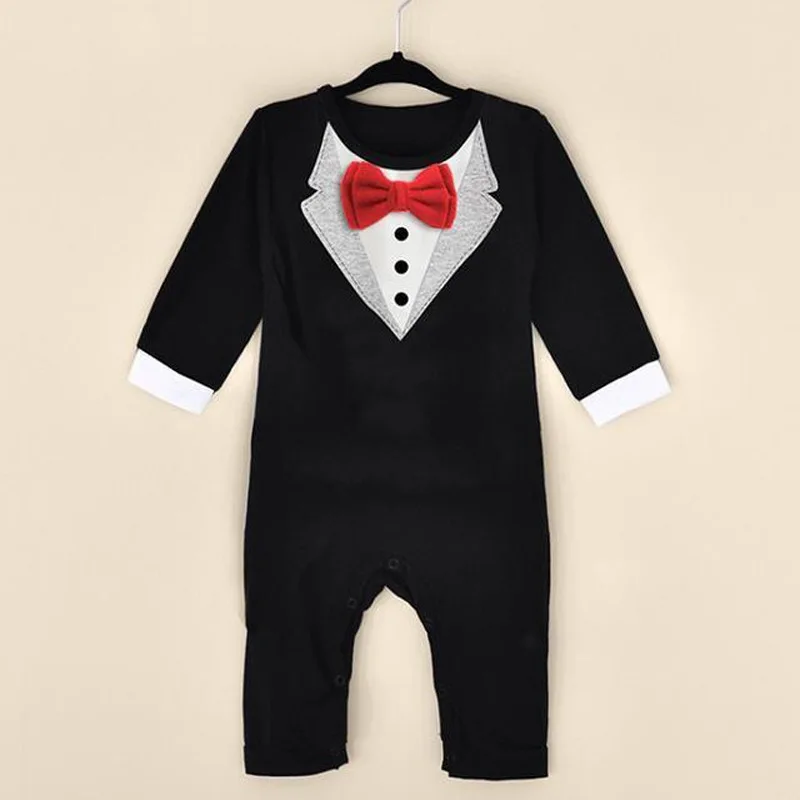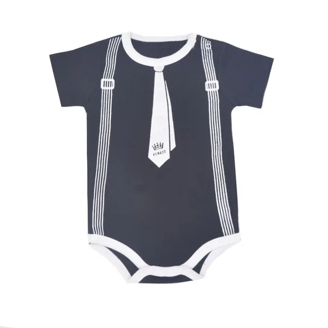 Baby Boy Gentlemen Rompers Bow Tie 0-12M Infant Kids Jumpsuit Black White Gray Tie Print Formal Newborn Short Sleeve Clothes