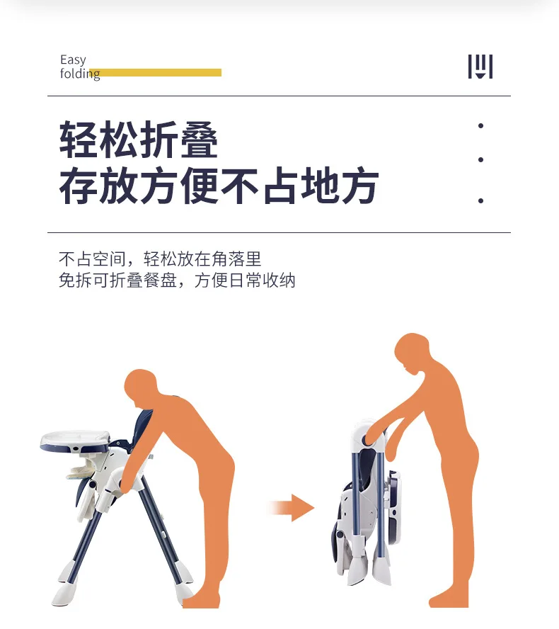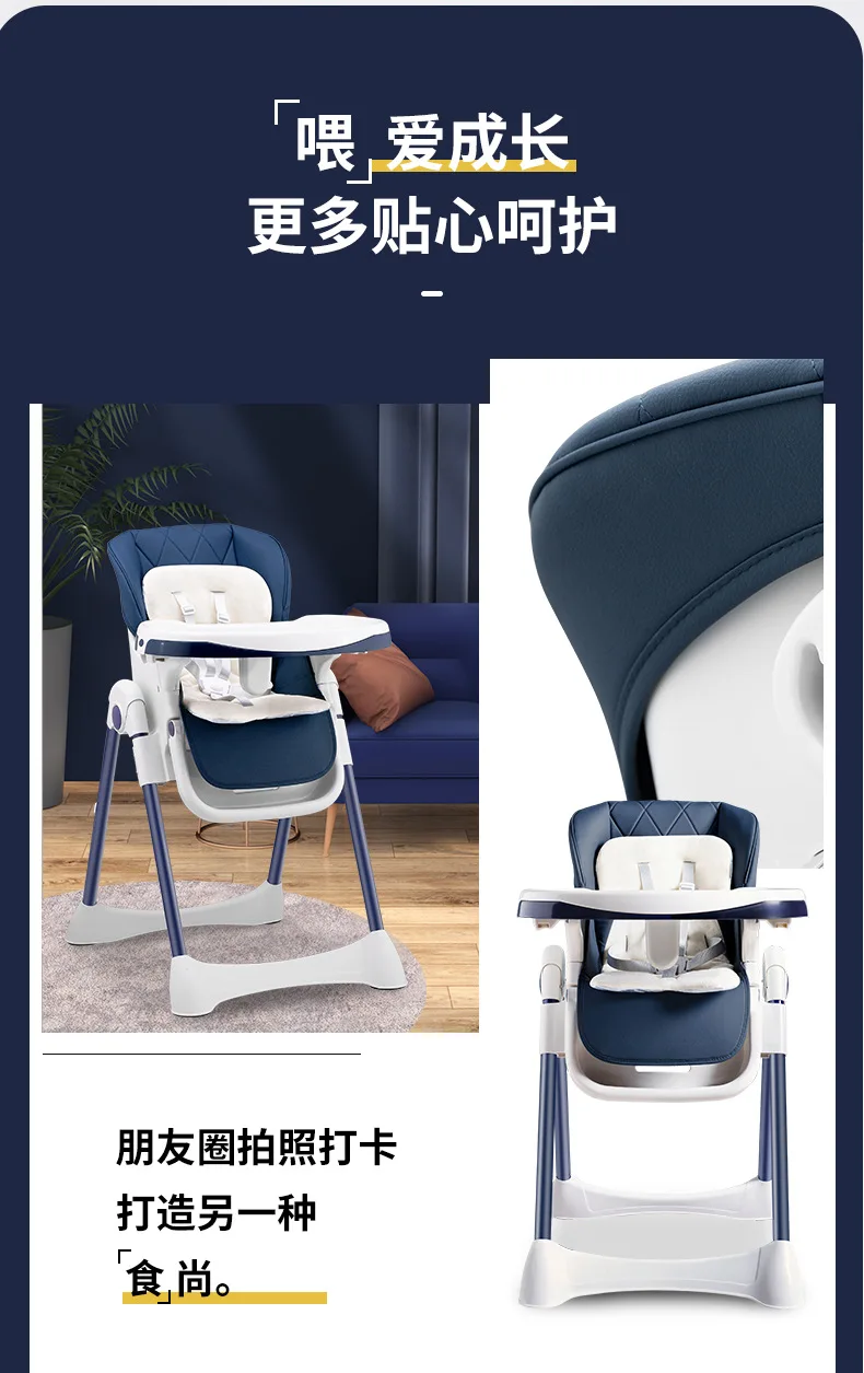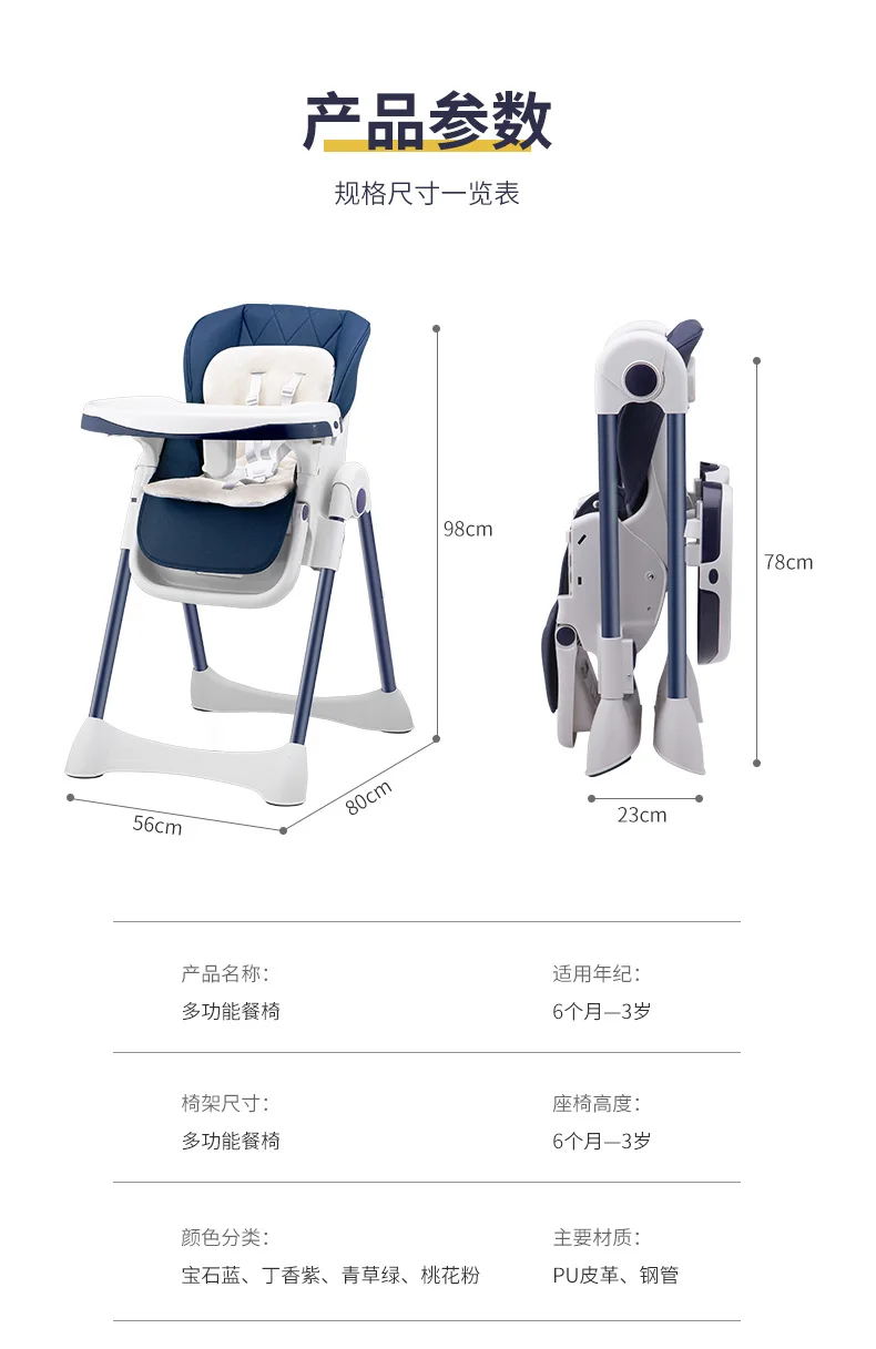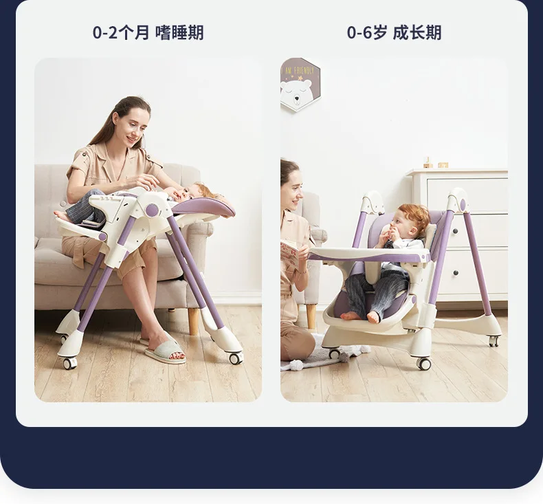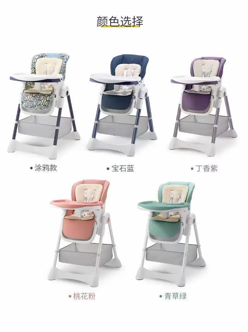 Baby Dining Chair with Wheels Foldable Household Portable Baby Can Sit and Reclining Dining Chair Children's Dining Chair