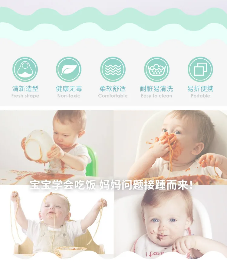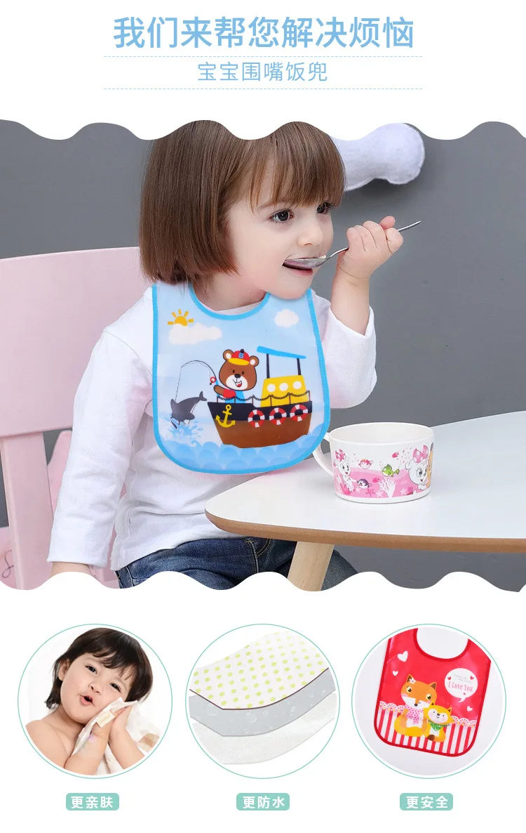 Baby Going Out Convenient Cartoon Waterproof Eating Bib Anti-fouling Easy To Wipe Three-dimensional Saliva Pocket Baby Supplies