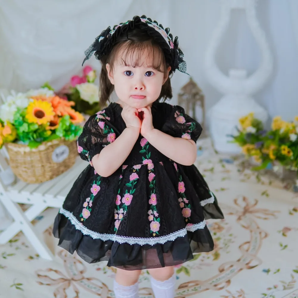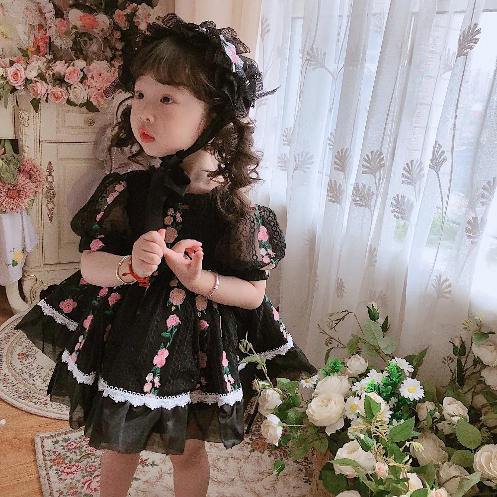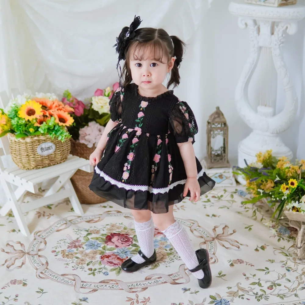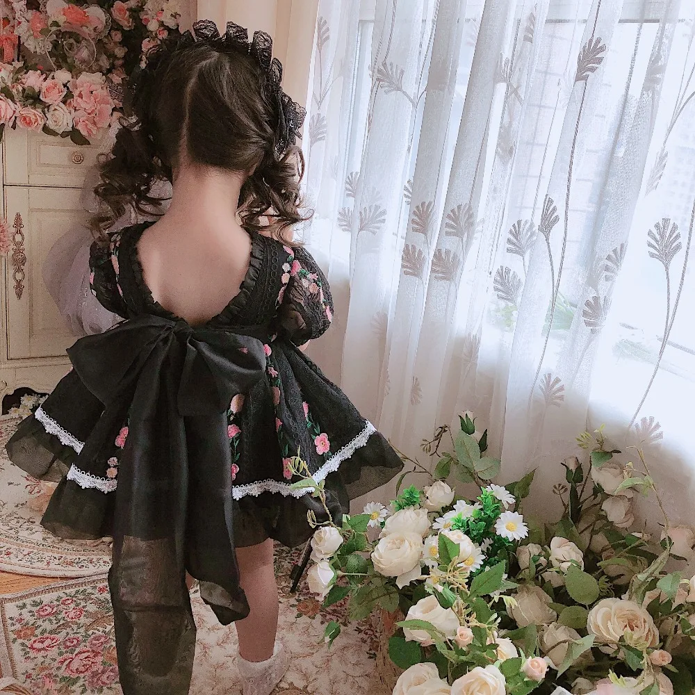 Baby Summer Vintage Palace Embroidery Black Backless Bow-knot Ball Gown Princess Dress for Girl Birthday Easter Wedding Party