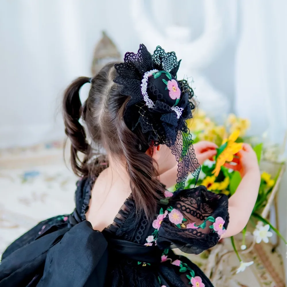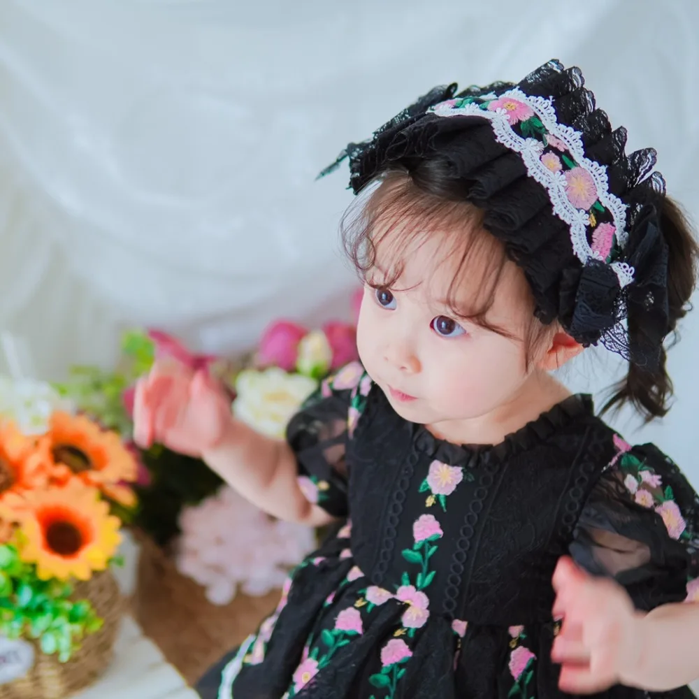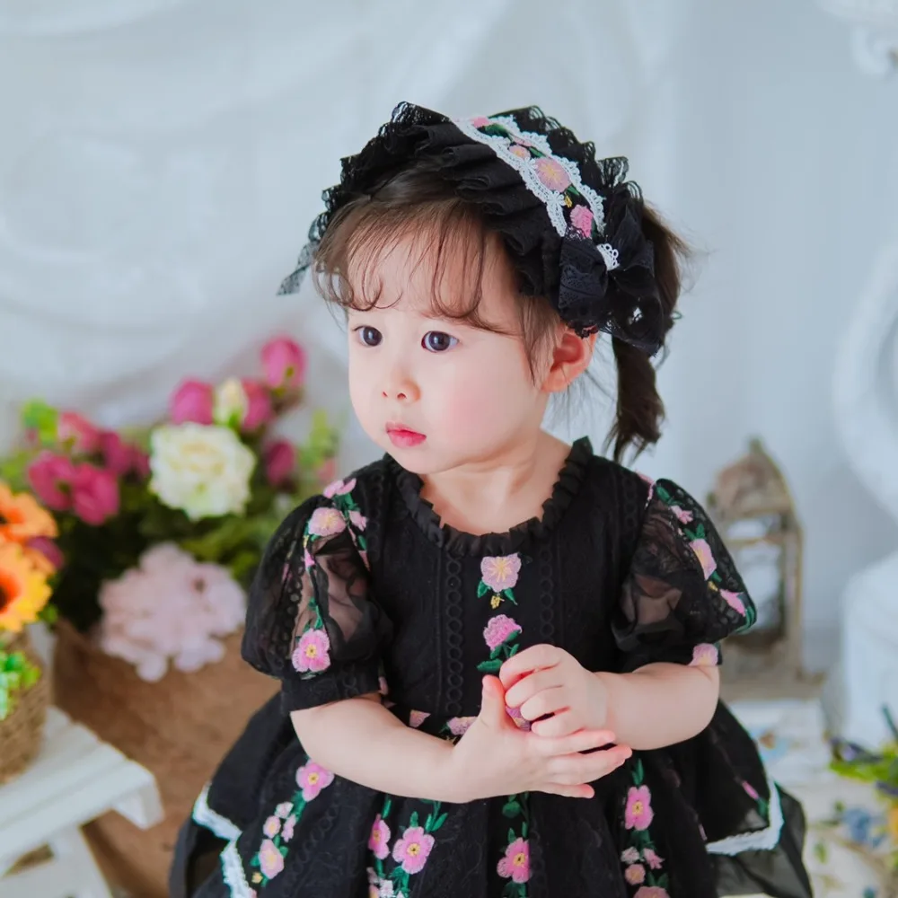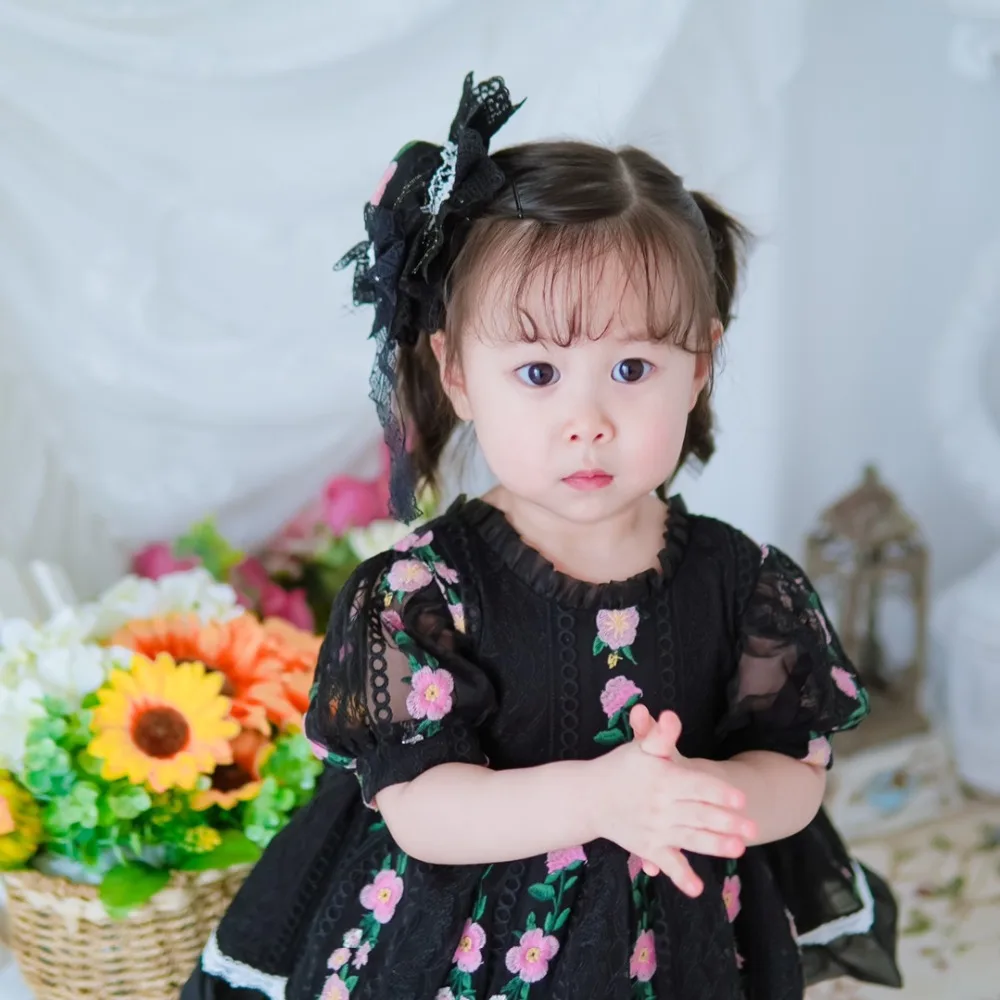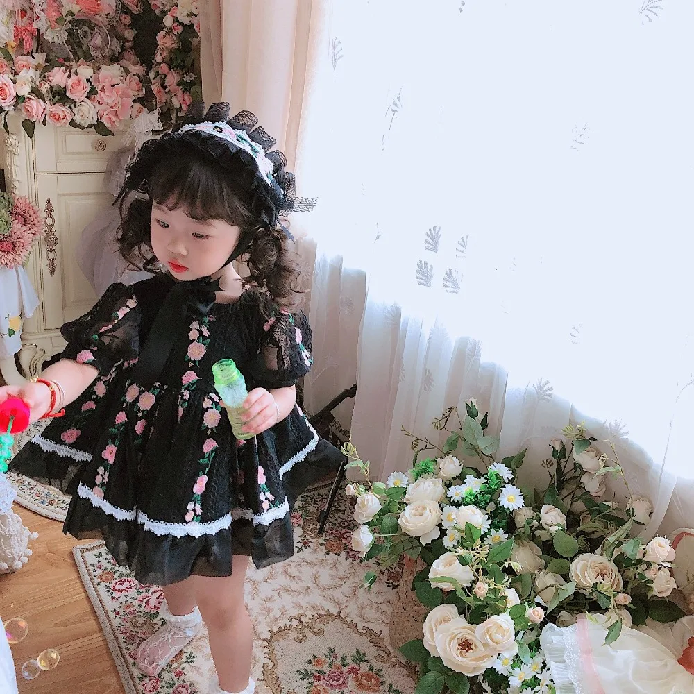 Baby Summer Vintage Palace Embroidery Black Backless Bow-knot Ball Gown Princess Dress for Girl Birthday Easter Wedding Party