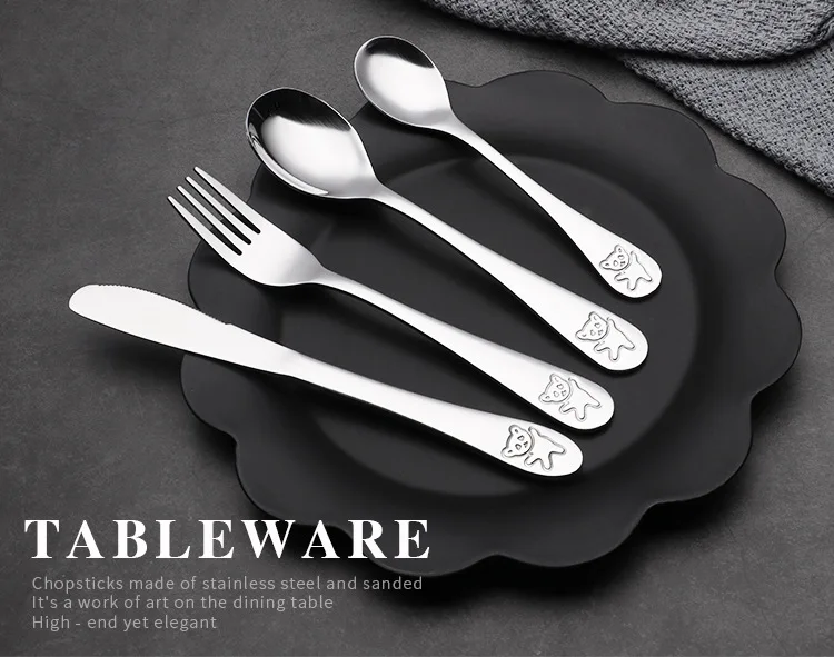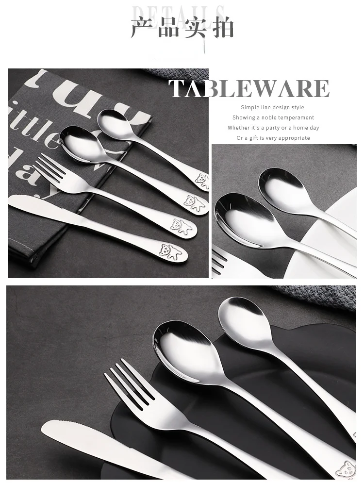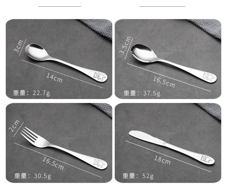 Baby Teaspoon Spoon Food Feeding Fork Knife Utensils Set Stainless Steel Kids Learning Eating Habit Children Tableware