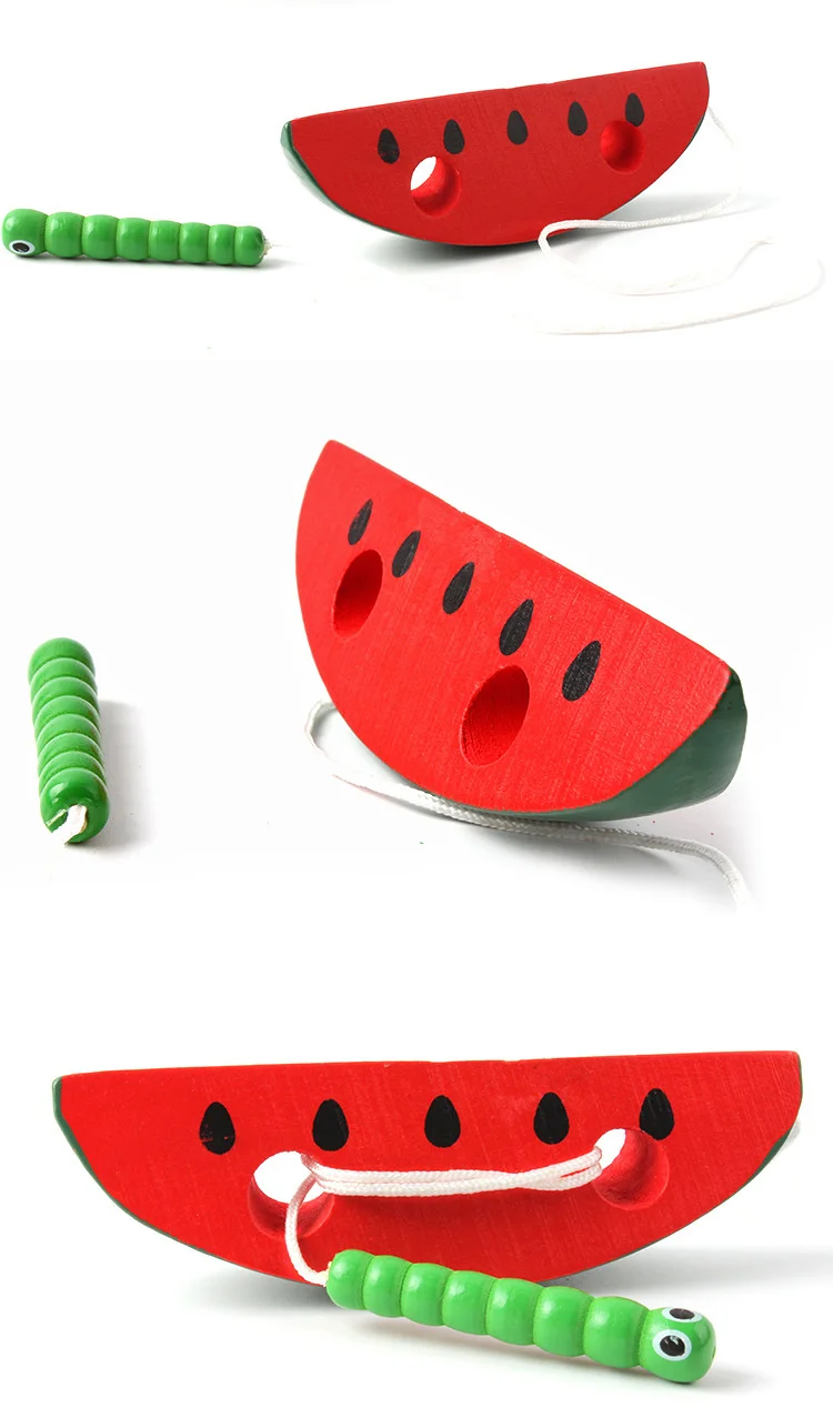 Baby Wooden Puzzle Worm Eat Fruit Apple Pear Funny Wooden Threading Toys Montessori Educational Toys for Children