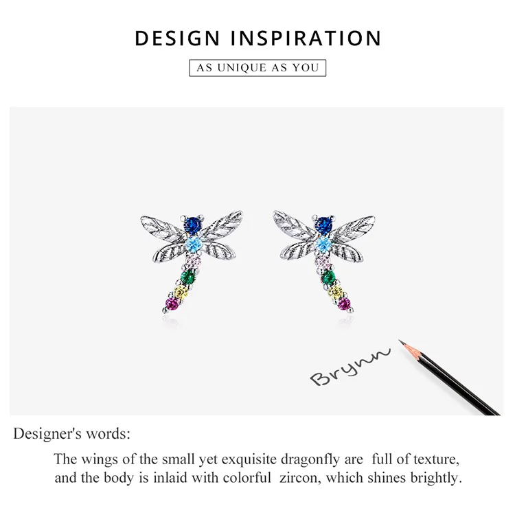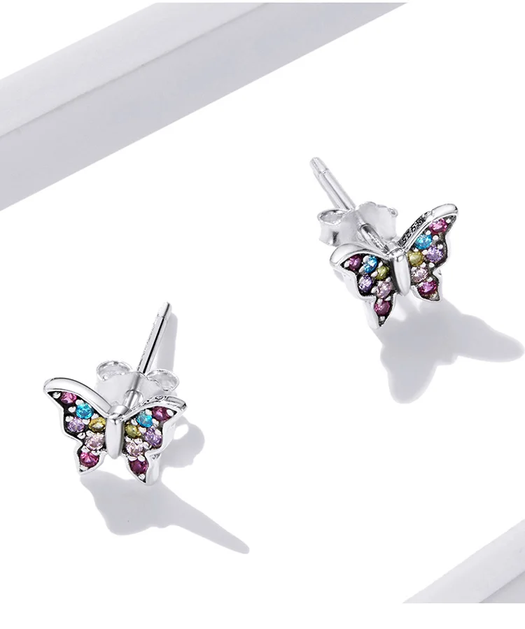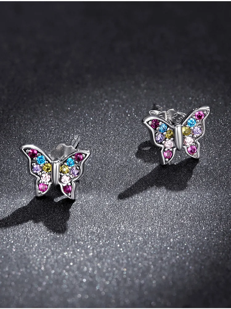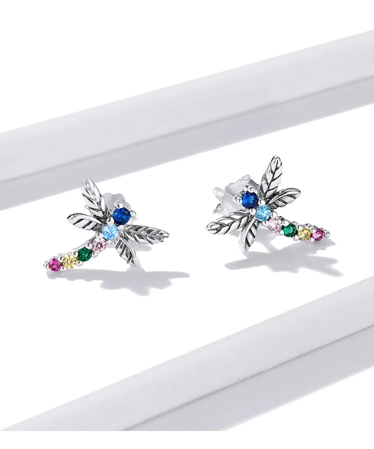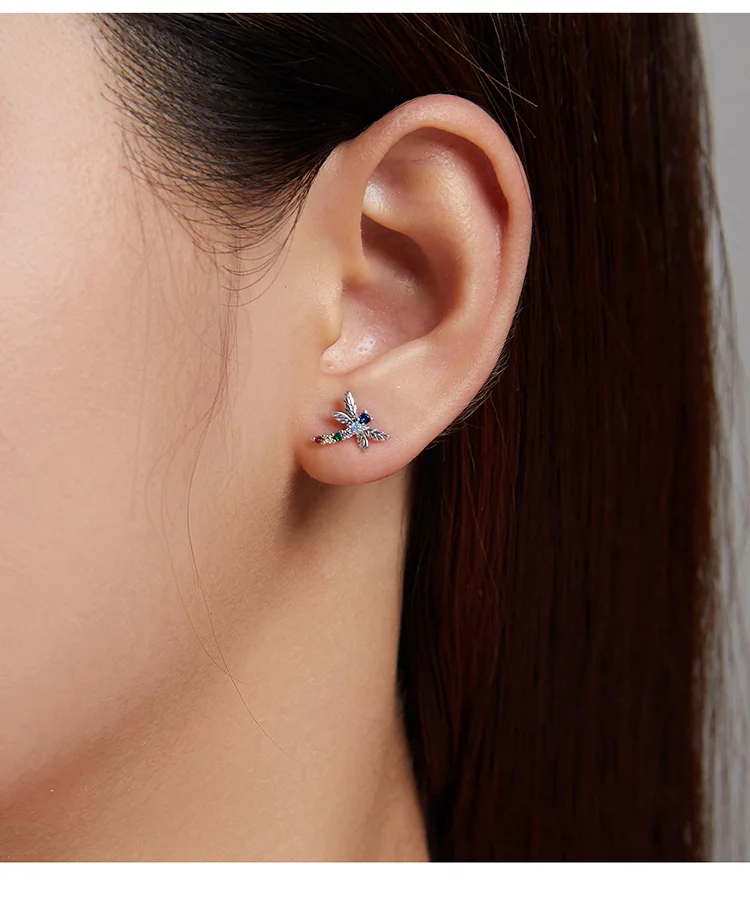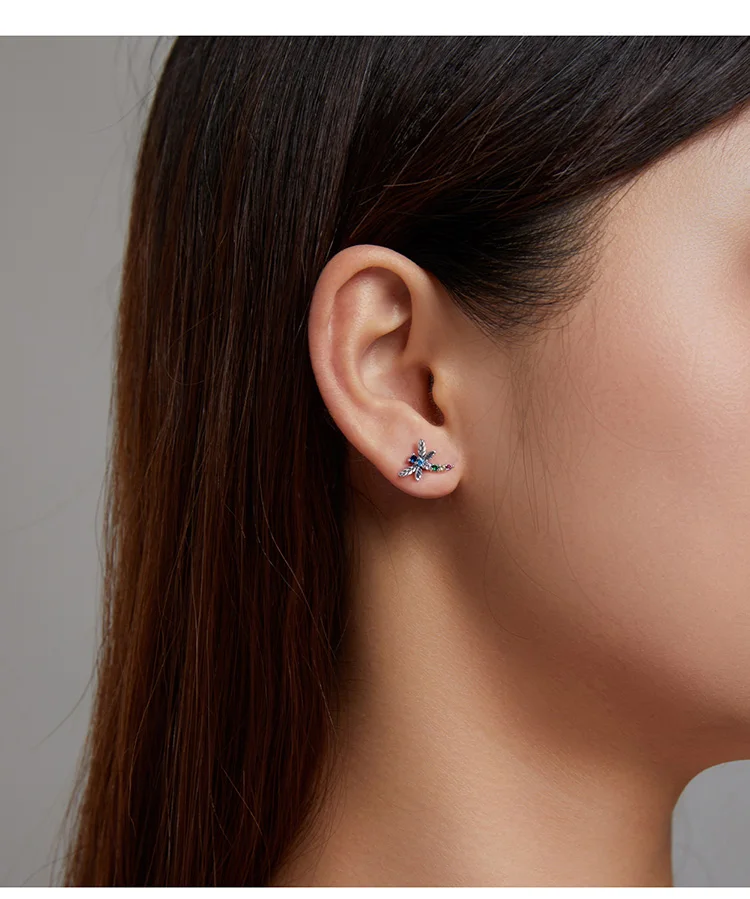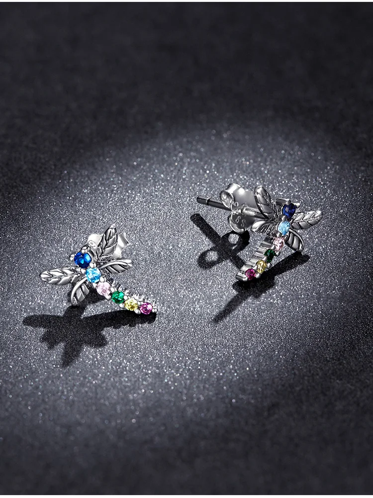 bamoer Genuine 925 Sterling Silver Colorful Multiple Zircons Butterfly Dragonfly Stud Earrings for Women Statement Jewelry