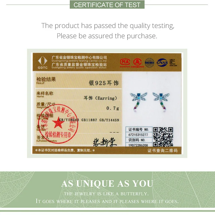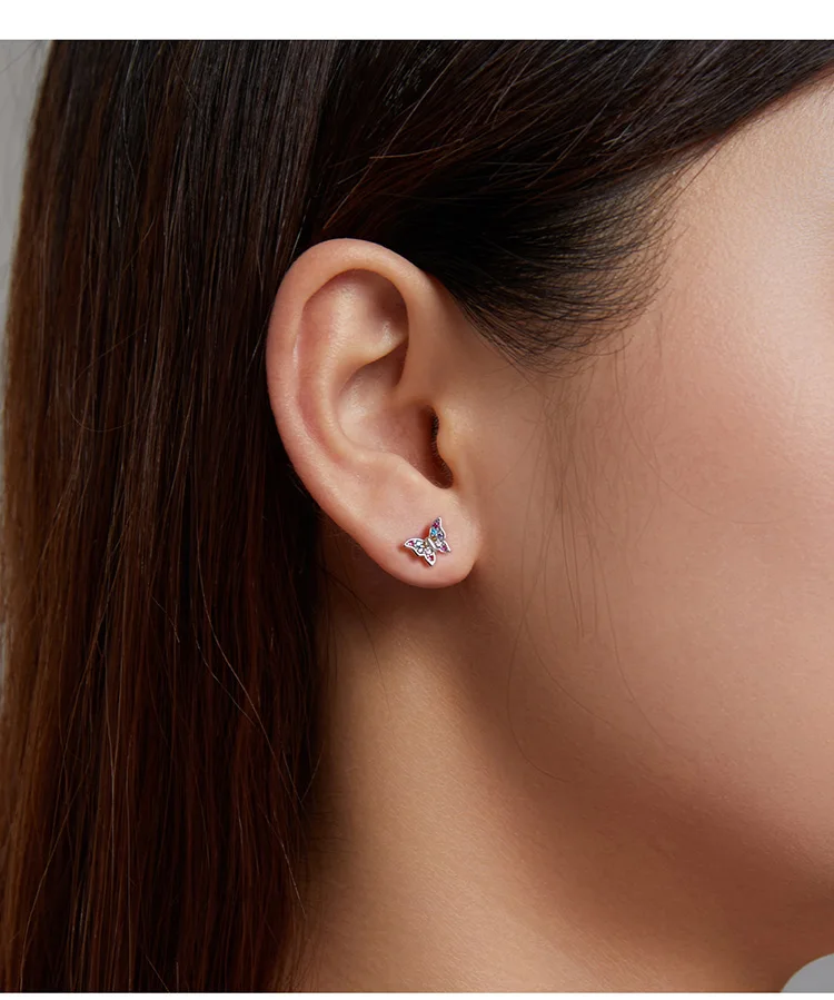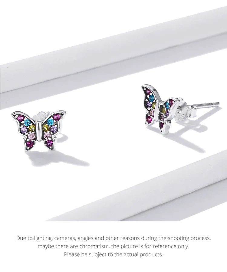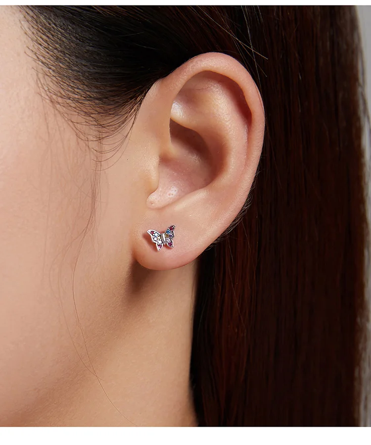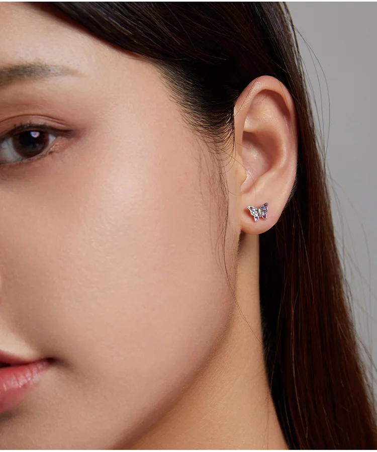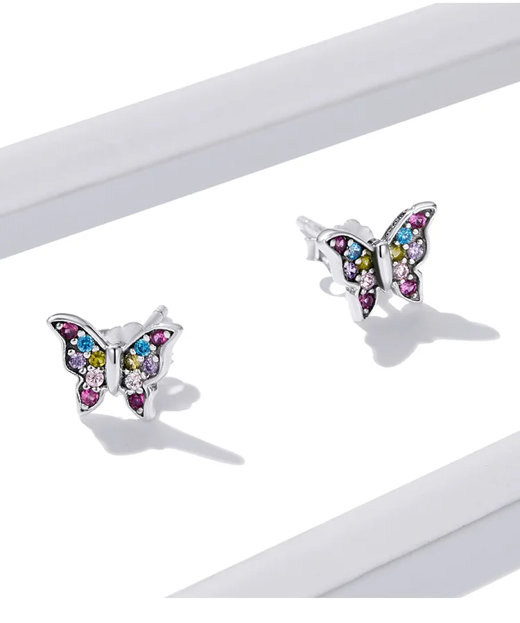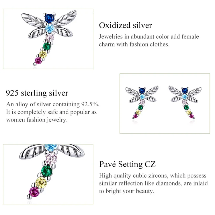 bamoer Genuine 925 Sterling Silver Colorful Multiple Zircons Butterfly Dragonfly Stud Earrings for Women Statement Jewelry