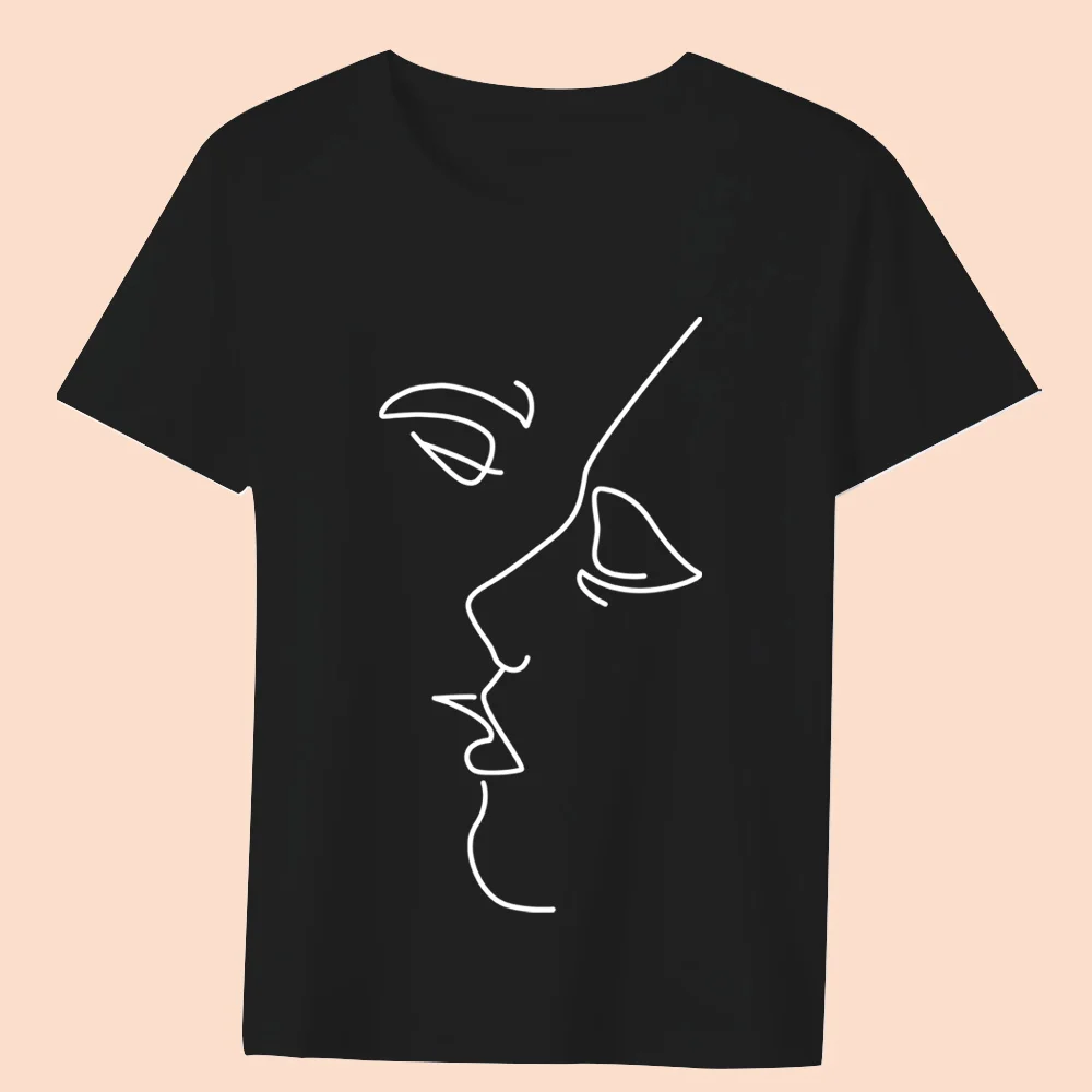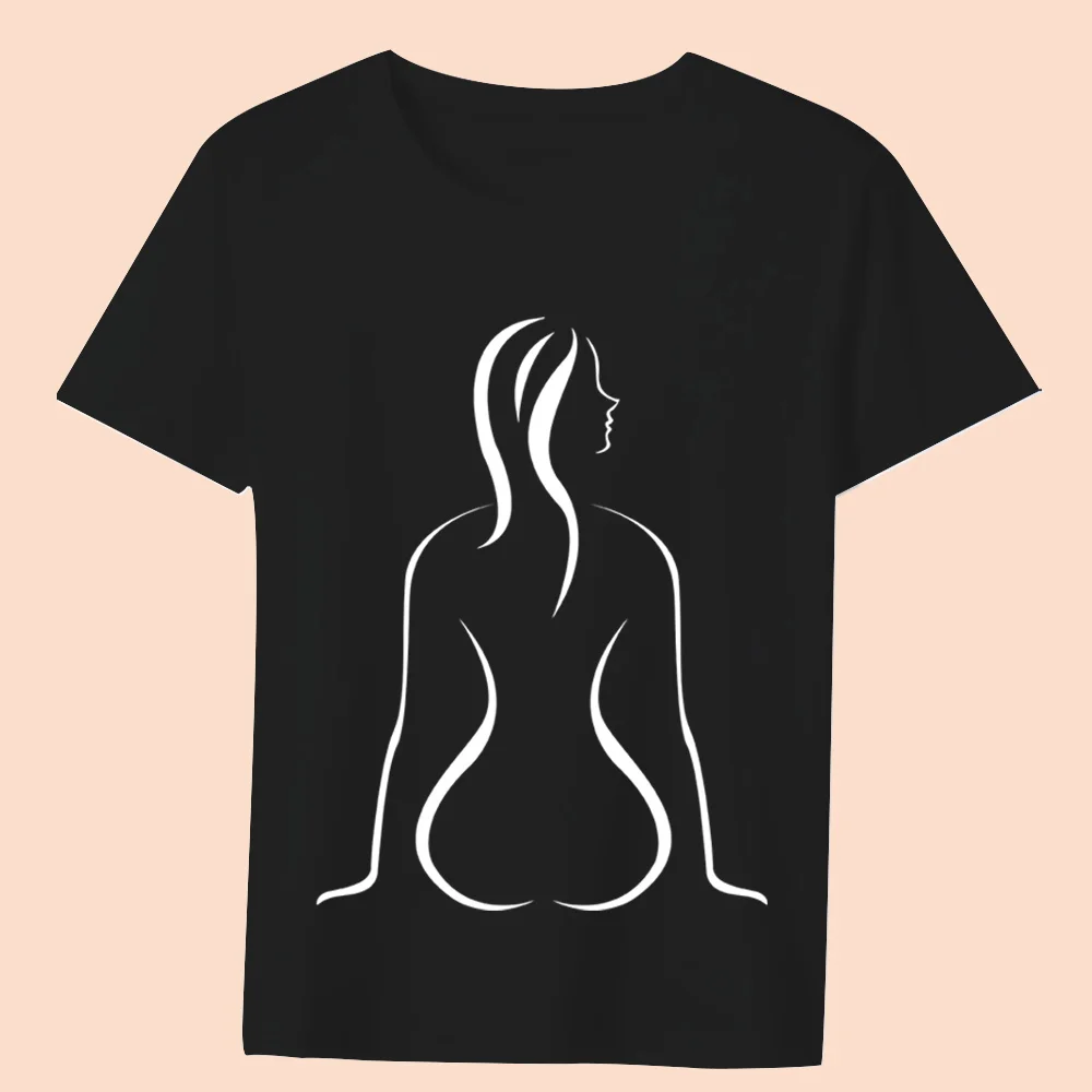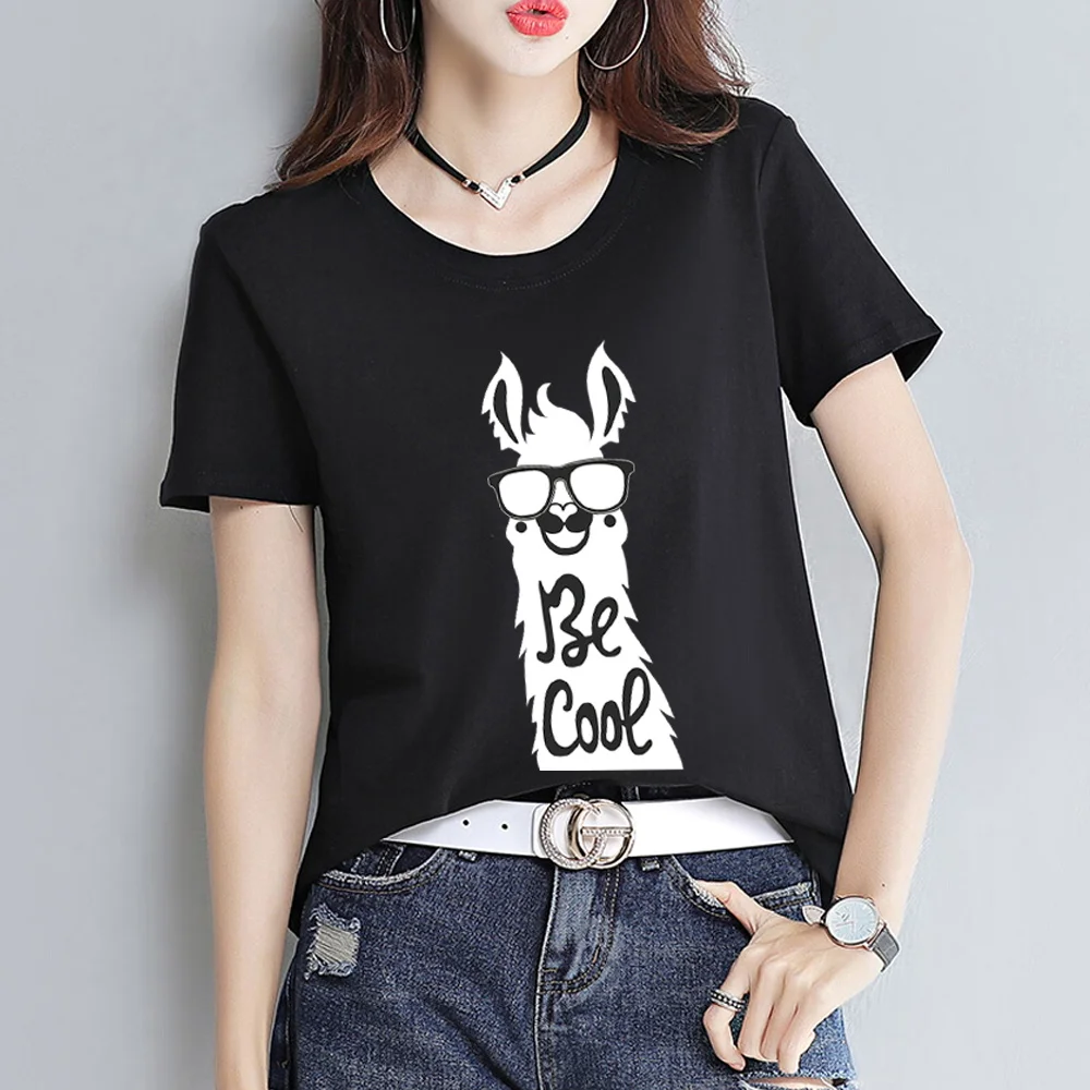 Basic T-shirt Women's Clothing Black Casual Tops White Pattern Print Slim Fit Commuter Ladies Round Neck Soft Short Sleeve Tees