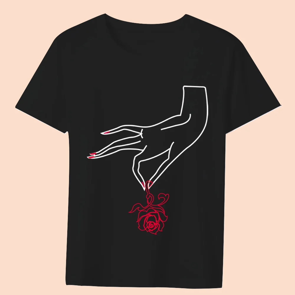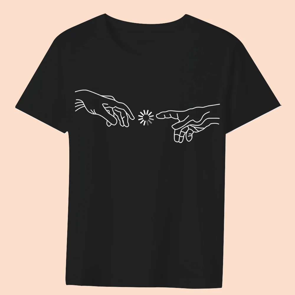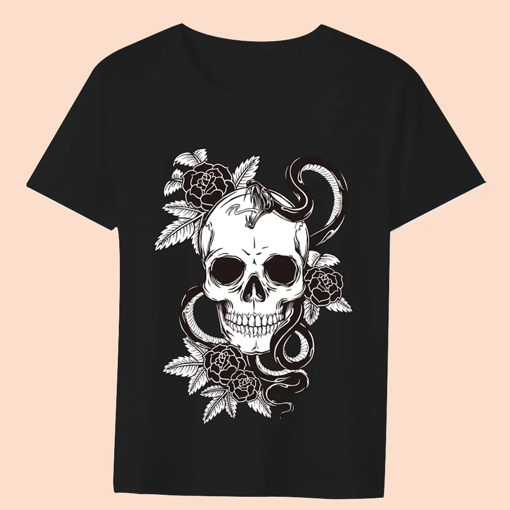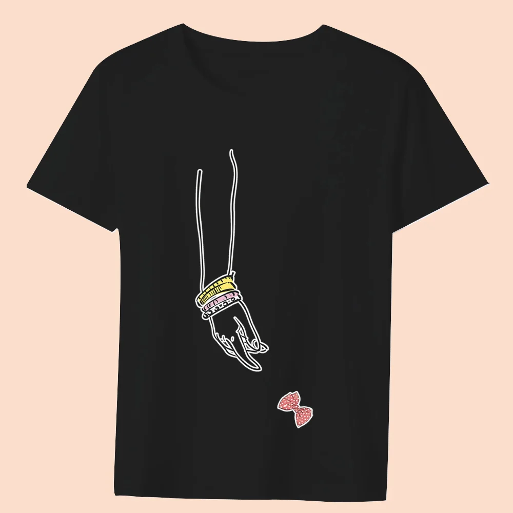 Basic T-shirt Women's Clothing Black Casual Tops White Pattern Print Slim Fit Commuter Ladies Round Neck Soft Short Sleeve Tees