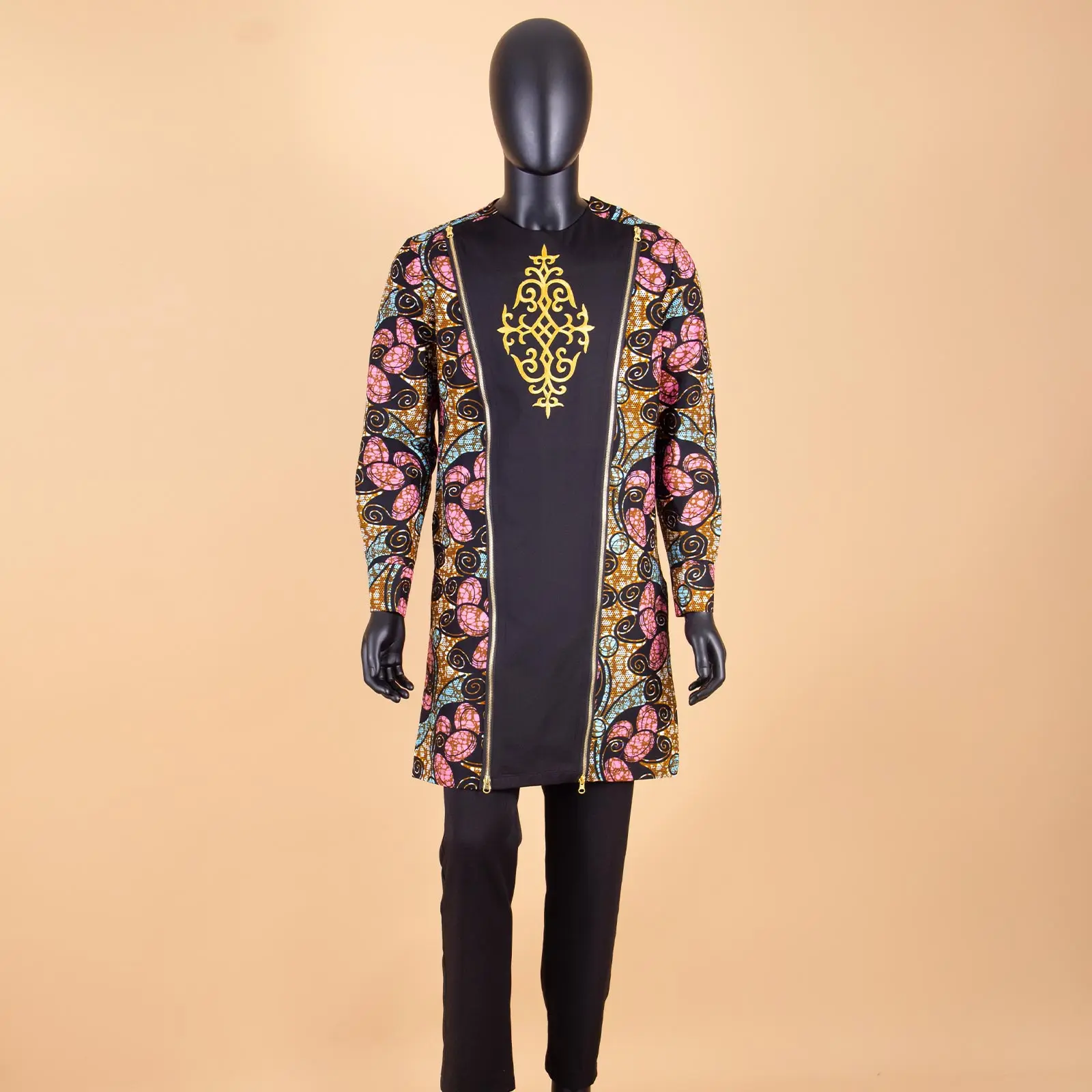 Bazin Riche African Traditional Clothing for Men Embroidery Dashiki Print Zip Blazer Coats with Trousers 2 Piece Suit A2116060