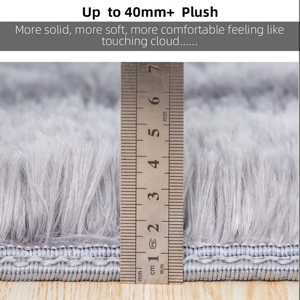 This area rug is made of the softest synthetic microfiber, the fur is approx 40mm long, silky smooth felling, ideal to keep your feet warm during cold weather, create a cozy area.