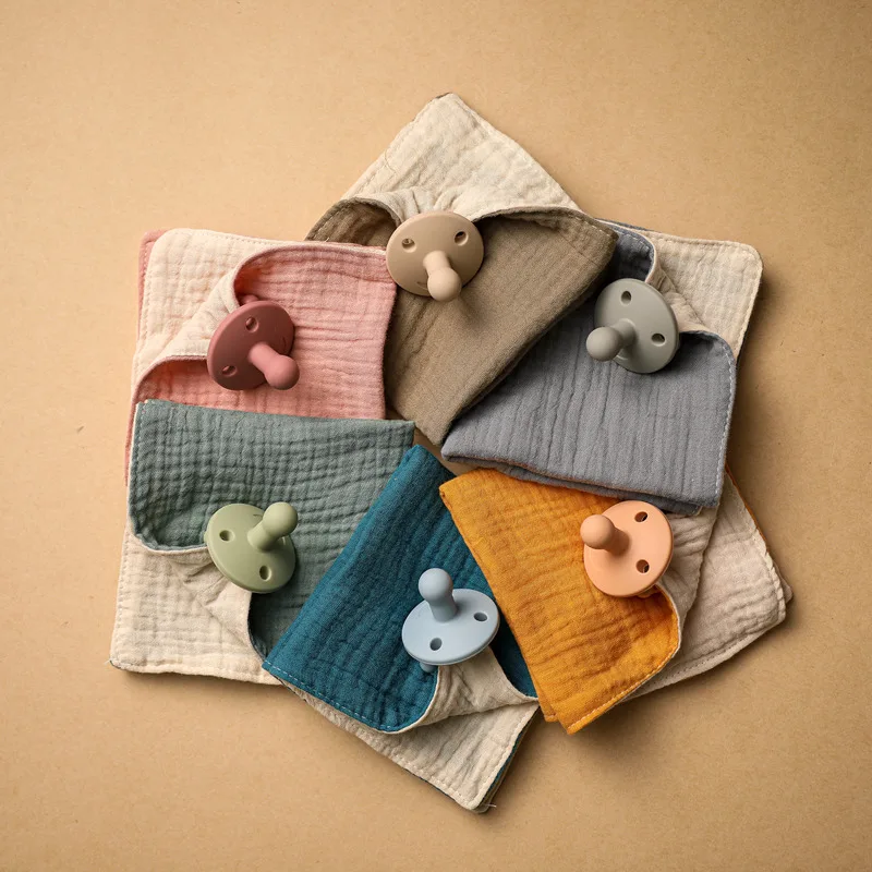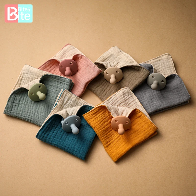 Bite Bites 2Pcs/1Set Baby Silicone Pacifier 100% Cotton Saliva Towel BPA Free Nipple Children Feeding Apron Baby Accessories