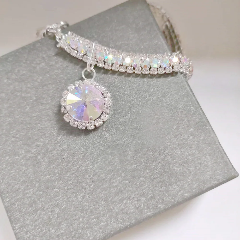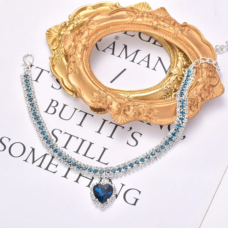 Bling Dog Crystal Collar Cat Necklace Glitter Rhinestones Heart Pendant Jewelry Adjustable Pet Collars for Small Dog Supplies
