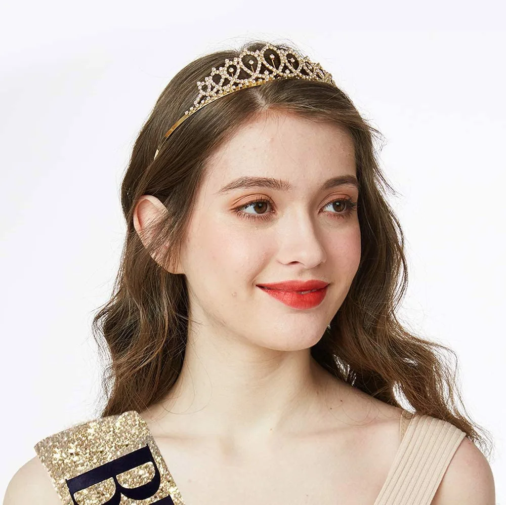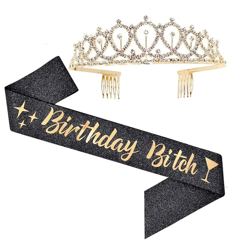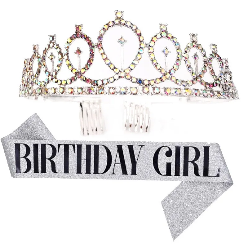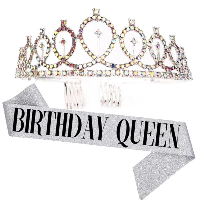 Bling Rhinestone Crystal Crown Tiara Women Birthday Anniversary Decoration Happy 21 30th Birthday Satin Sash Party Supplies